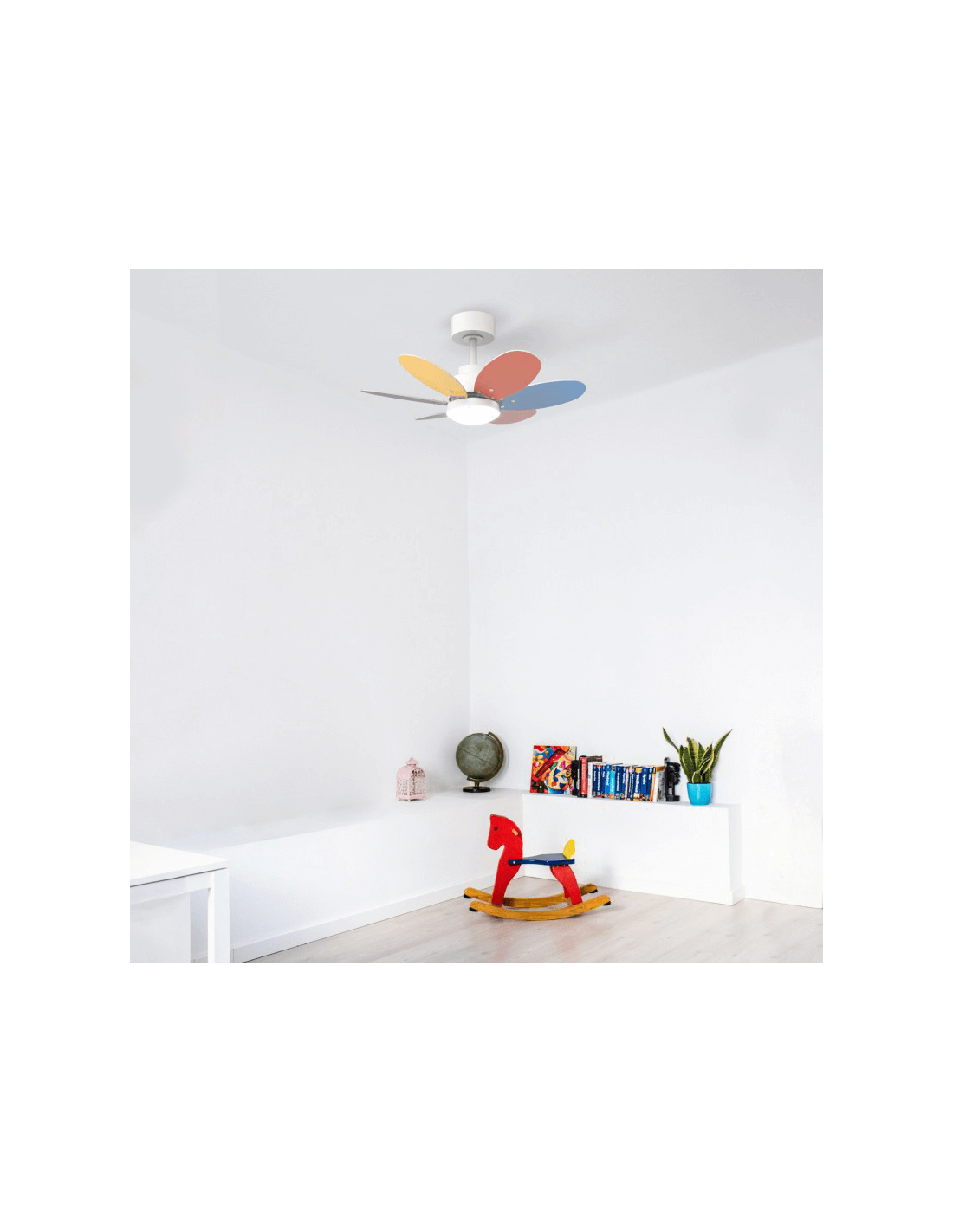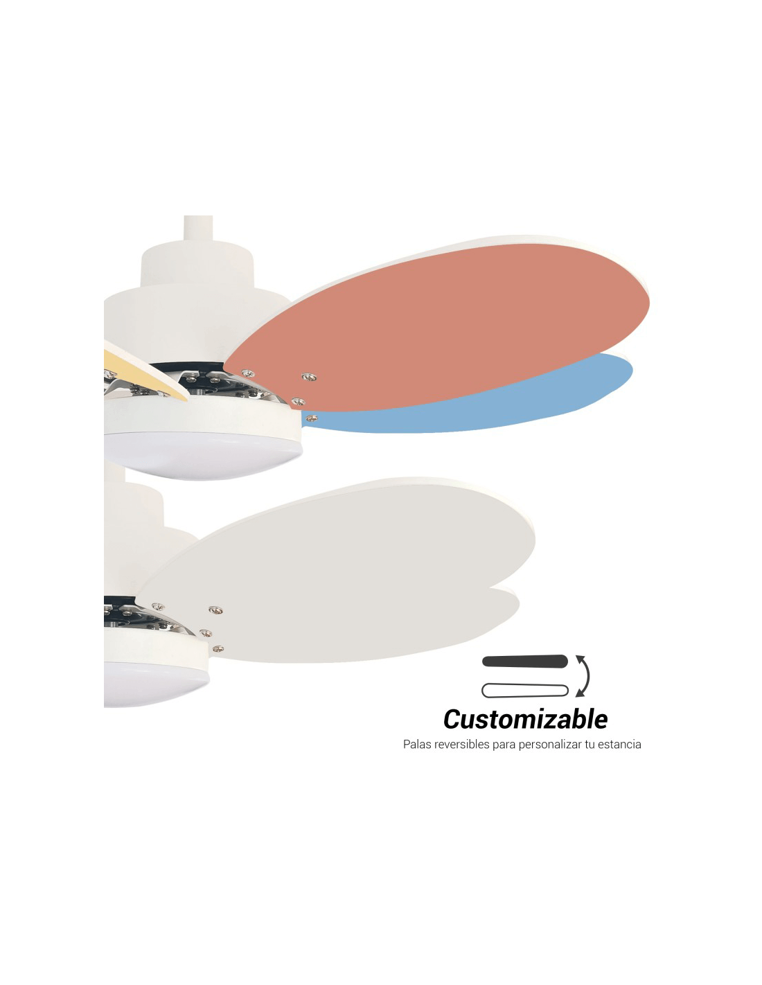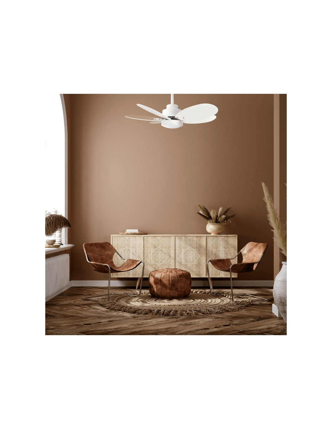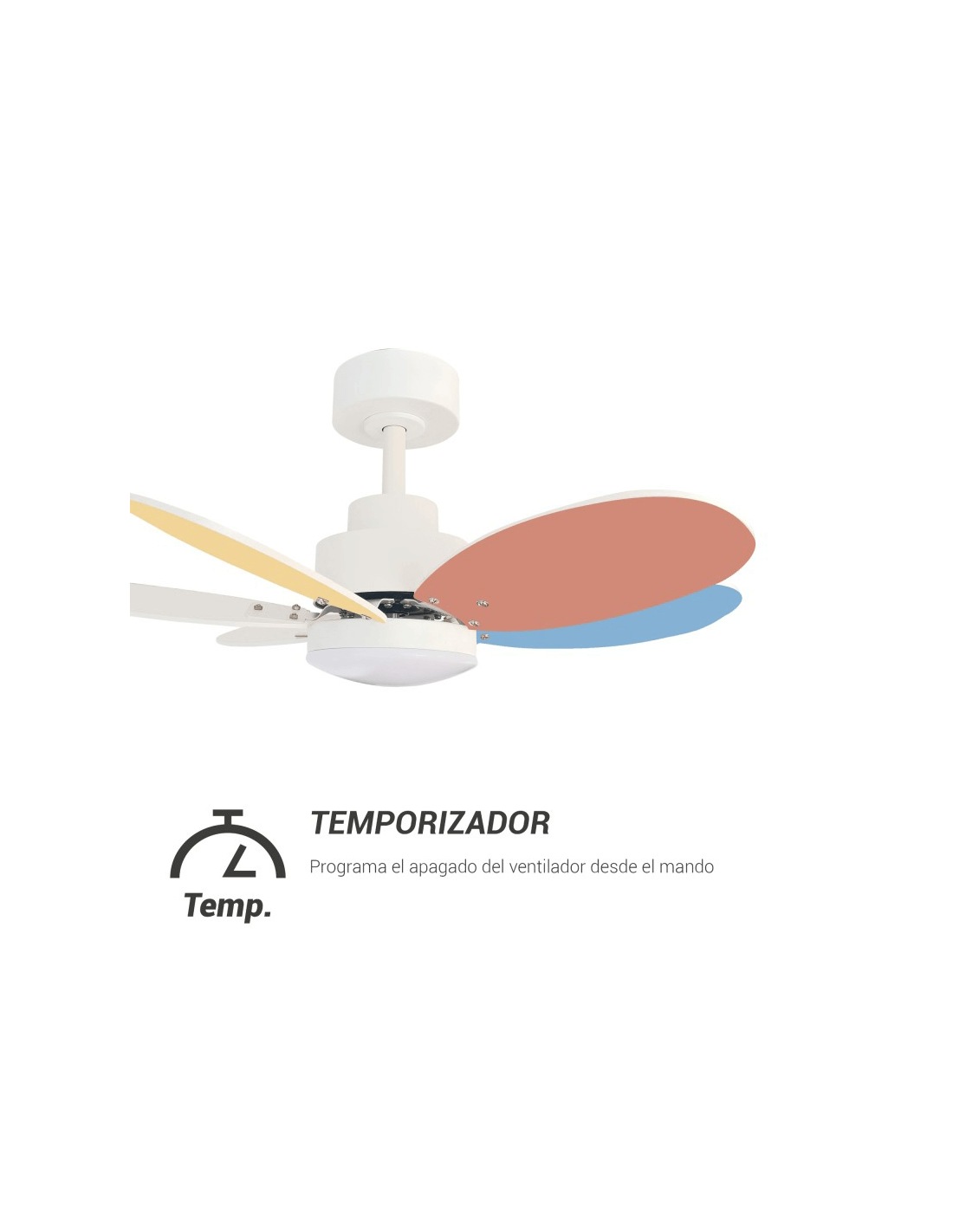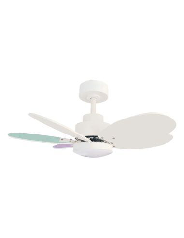 Ventilador ANNE con acabado en blanco con aspas de madera oscura