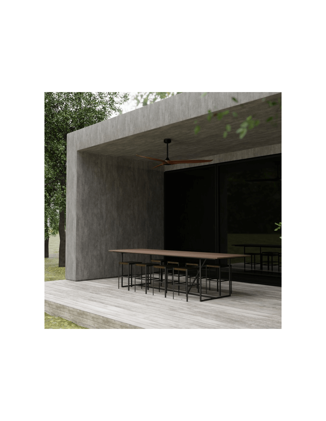 Nova XXL es un ventilador de techo con un diámetro de 1850 mm, diseñado para ventilar sin esfuerzo espacios de interior o exterior que superen los 32m2, lo que nos da una idea de su increíble potencia.