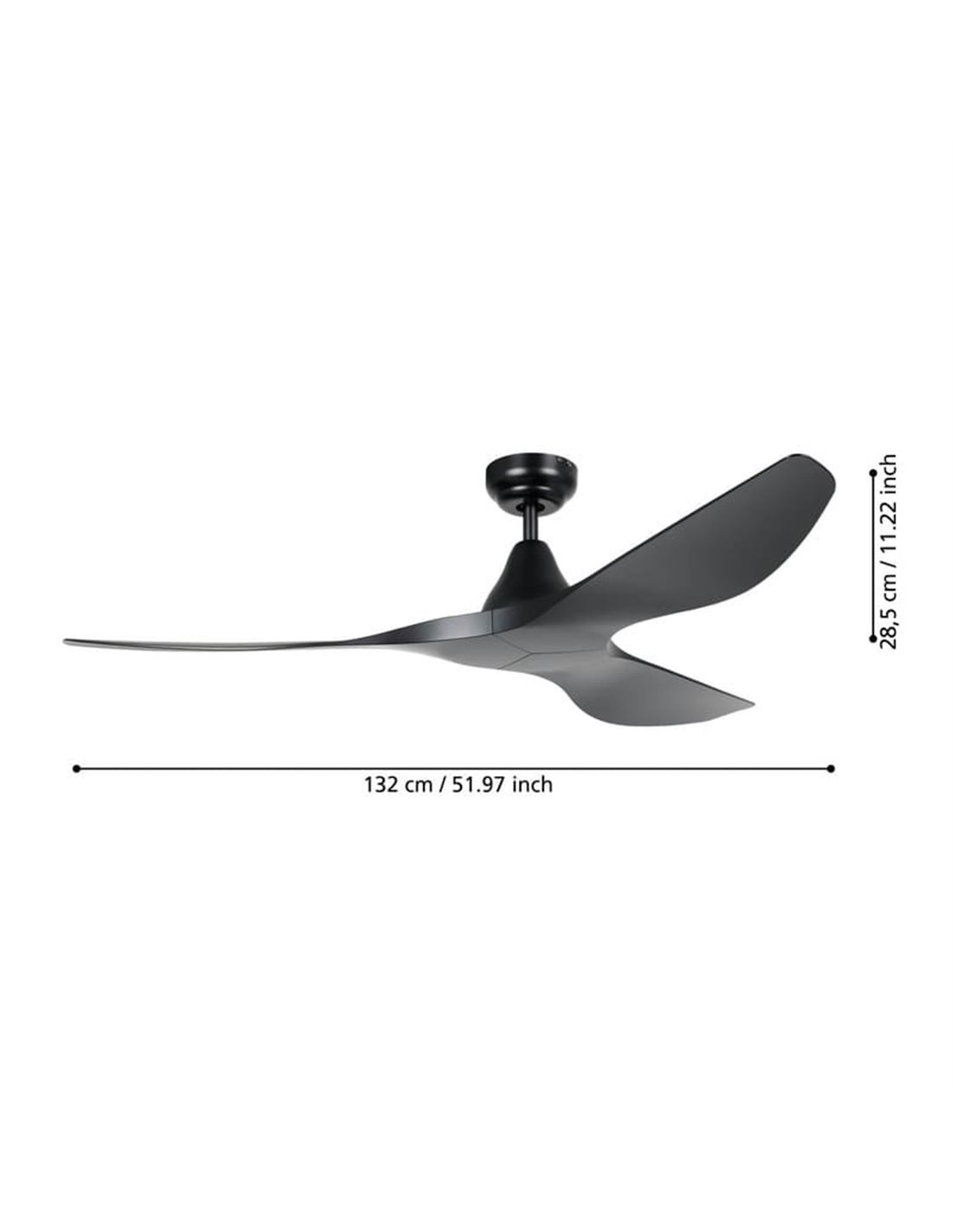 Ventilador de Techo LED PORTSEA 19W, Negro, 2300Lm, CCT 3000K-4000K-5000K para Interior