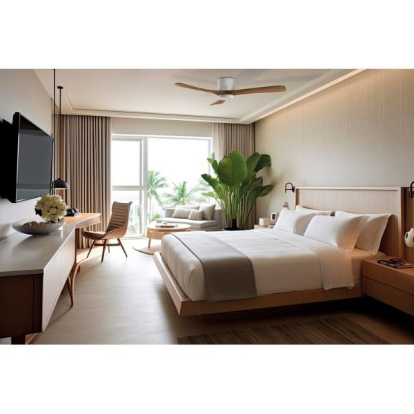 Ventilador de techo sin iluminación ROK Blanco, MOTOR DC 32W, CL.I, Mando a distancia