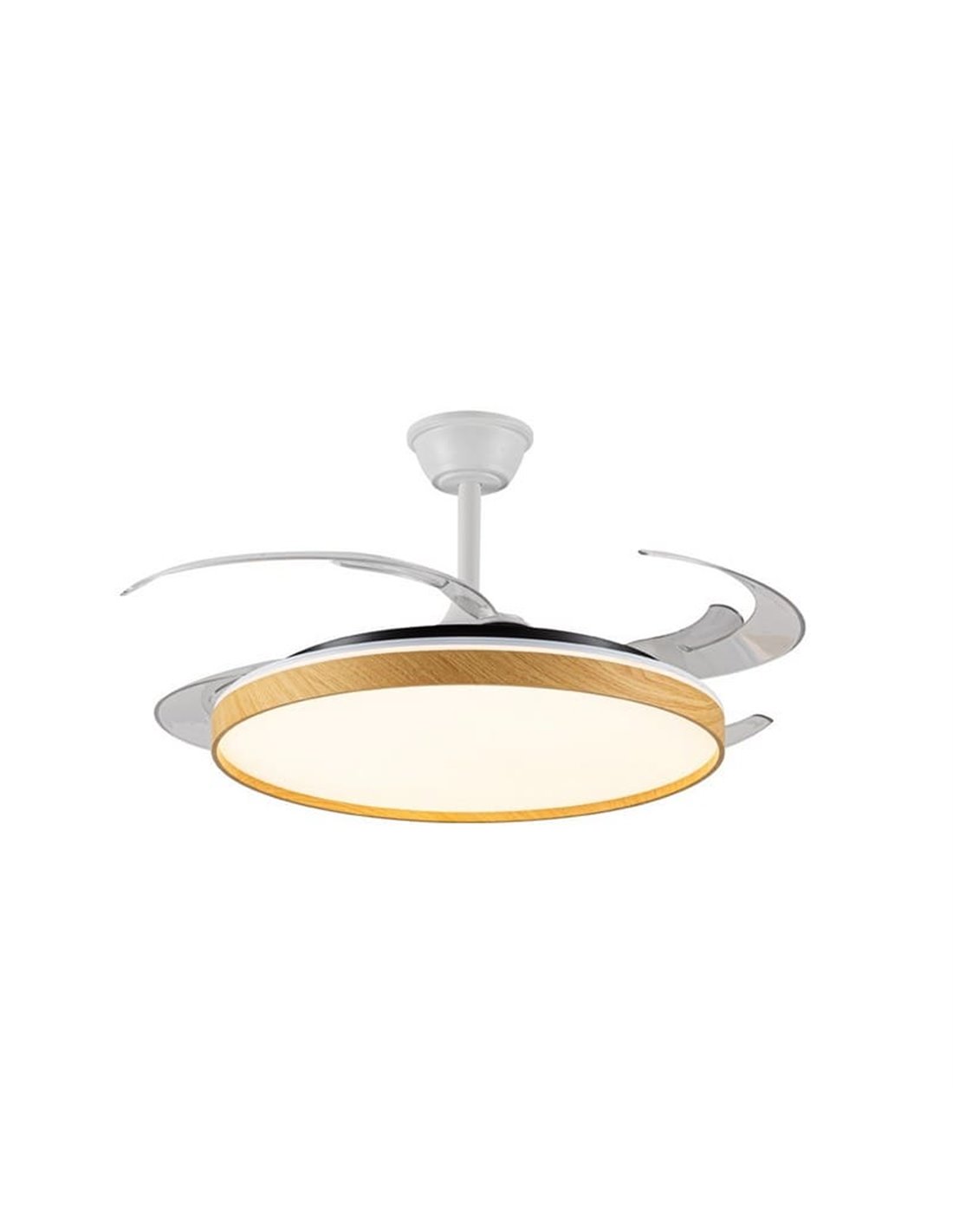 El ventilador de techo LED PANAM L es la solución perfecta para quienes buscan una combinación de ventilación eficiente e iluminación potente en estancias de mayor tamaño. Sus aspas retráctiles se despliegan al activarse y se ocultan cuando no están en uso, ofreciendo una estética limpia y moderna.