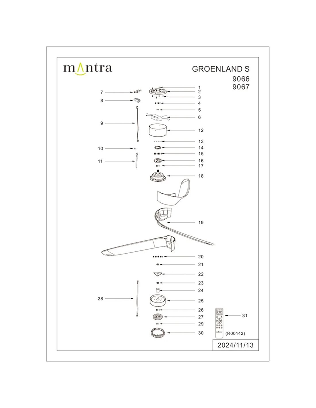 Ventilador LED GROENLAND XS blanco Ø79,5cm DC 24W 1700lm CCT 2700K-5000K con Mando