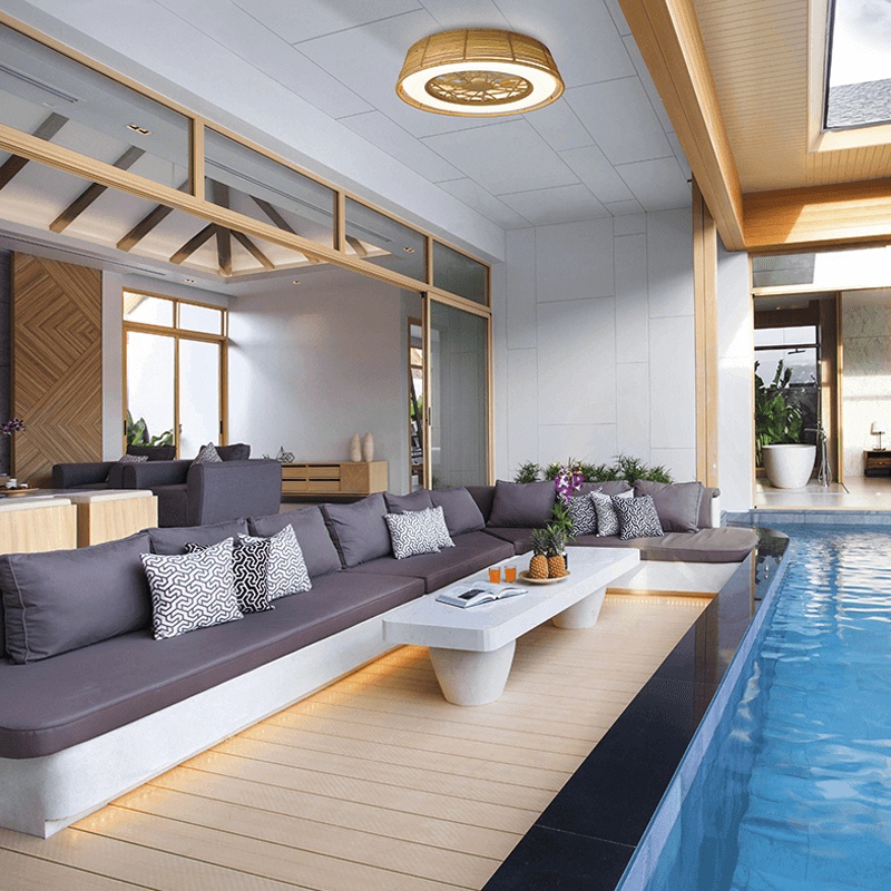 Ventilador plafón LED Indonesia con aspas ocultas natural