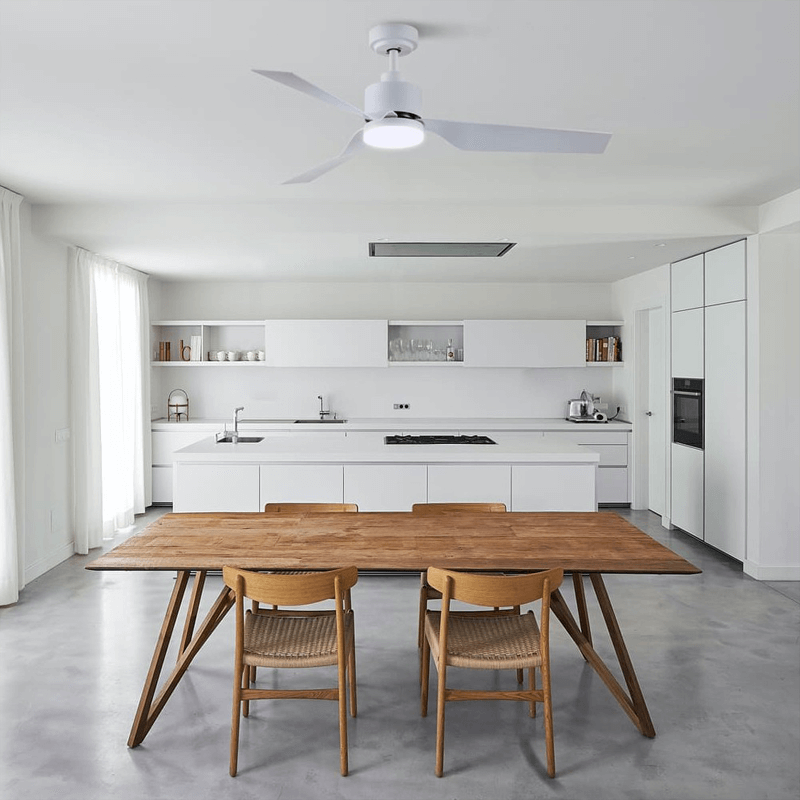 Este ventilador de techo cuenta con tecnología LED integrada con una potencia de 15W con tres temperaturas de color para dotar de atmósferas cálidas, neutras o frías (3000K/4000K/6000K) con el que disfrutar cada estación del año y 1500 lúmenes. Este ventilador dispone de un motor DC silencioso con 5 velocidades diferentes e incluye temporizador de 1-4h-8h y función verano/invierno para refrescar o calentar estancias de más de 20 metros cuadrados.