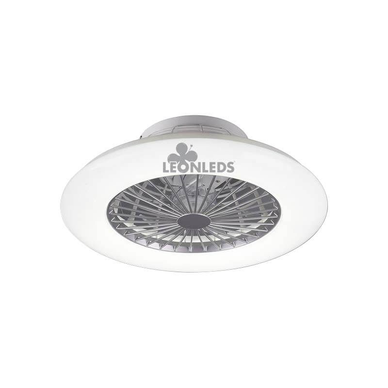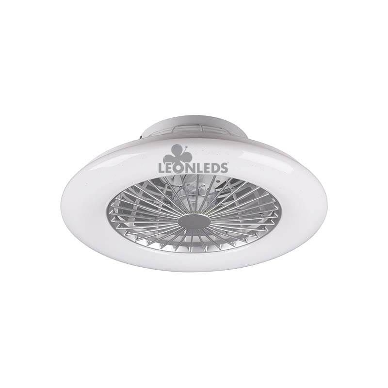 Integra 7 aspas fabricadas en ABS en una estructura metálica con acabado en blanco que proporciona un sistema muy minimalista: esconde las palas cuando no se usan. Por la parte exterior encontramos el difusor de luz que ofrece un efecto de brillo similar a las estrellas creando un efecto visual diferente y original.