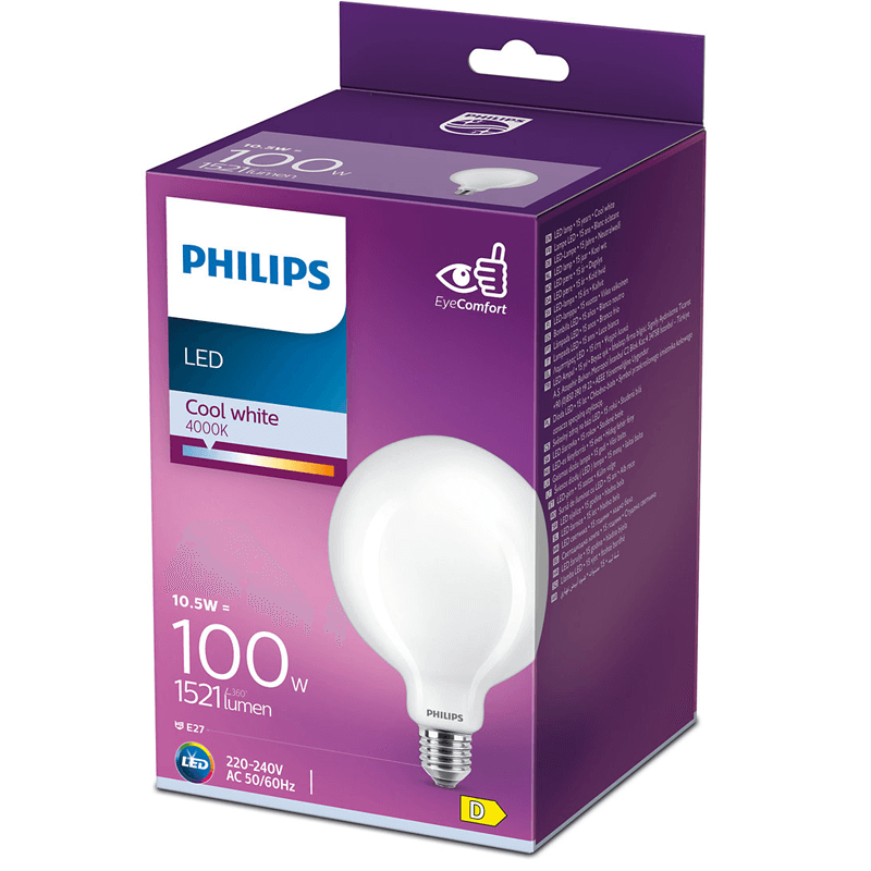Ampoule E27 G120 LED LEDBulb Classic d'une puissance de 10,5W équivalent à 100W d'une ampoule à incandescence classique de 1521Lm . Il a une durée de vie utile de plus de 15 000 heures d'utilisation et une garantie de 2 ans.