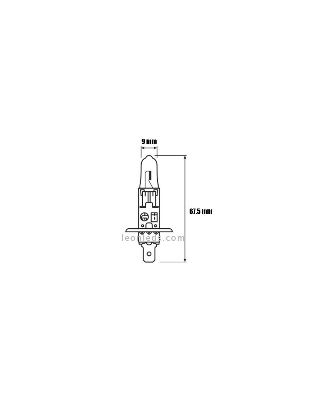 Ampoule halogène avec douille P14s (H1) , valable pour les installations 12V , avec une puissance de 55w et une intensité lumineuse de 1550Lm.