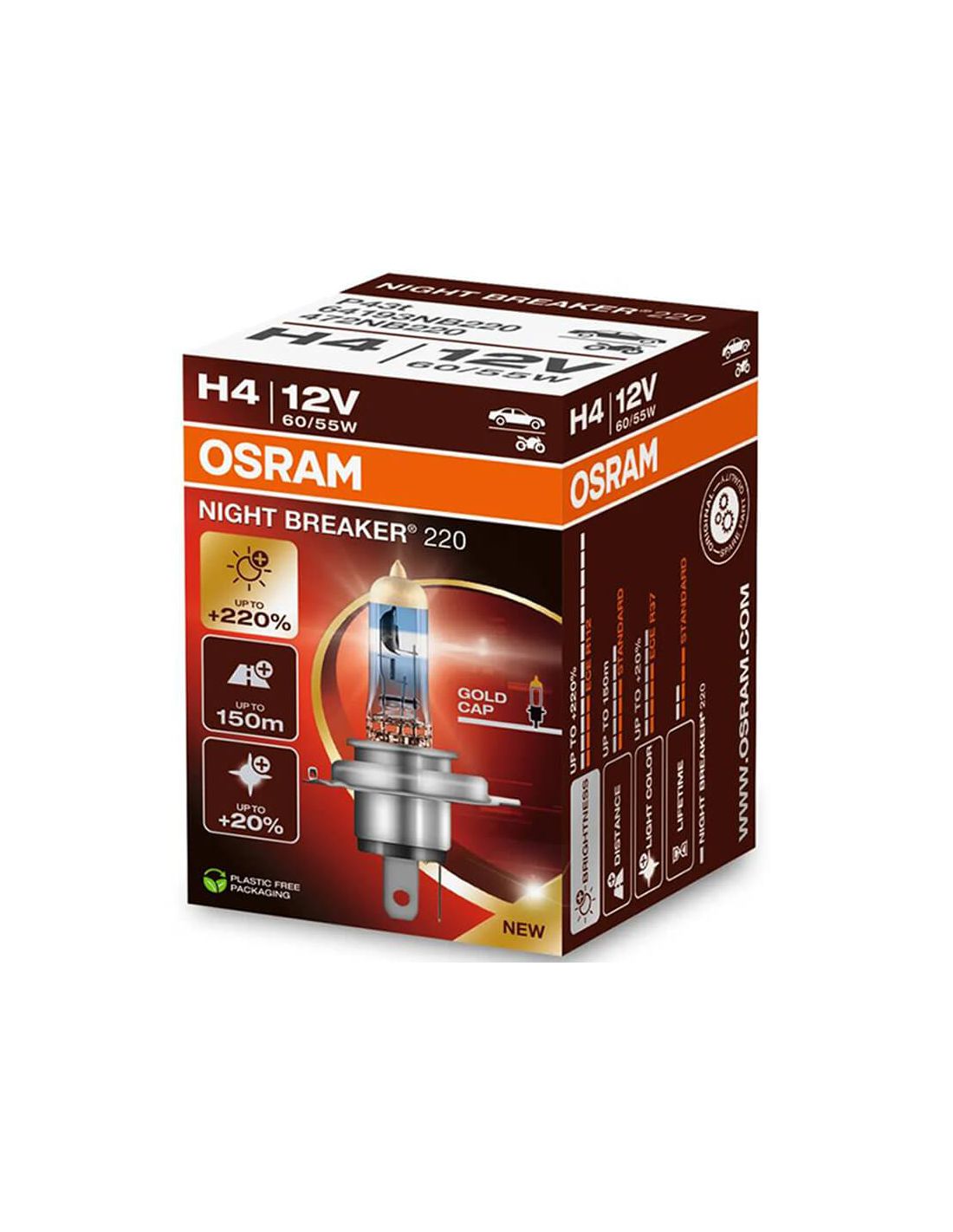 L'ampoule halogène H4 la plus puissante d'OSRAM. Lumière blanche éclatante avec 220 % d'intensité en plus, portée du faisceau jusqu'à 150 m et visibilité améliorée. Pour les conducteurs exigeant des performances maximales.