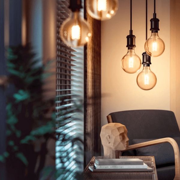 Donnez le ton avec une ampoule globe LED G125 avec un design à filament en spirale . De style vintage mais moderne, les ampoules à filament ont les mêmes fonctions que les autres ampoules intelligentes, mais donnent à la décoration intérieure une touche rétro. Dimensions : 125 mm de diamètre et 198 mm de hauteur.