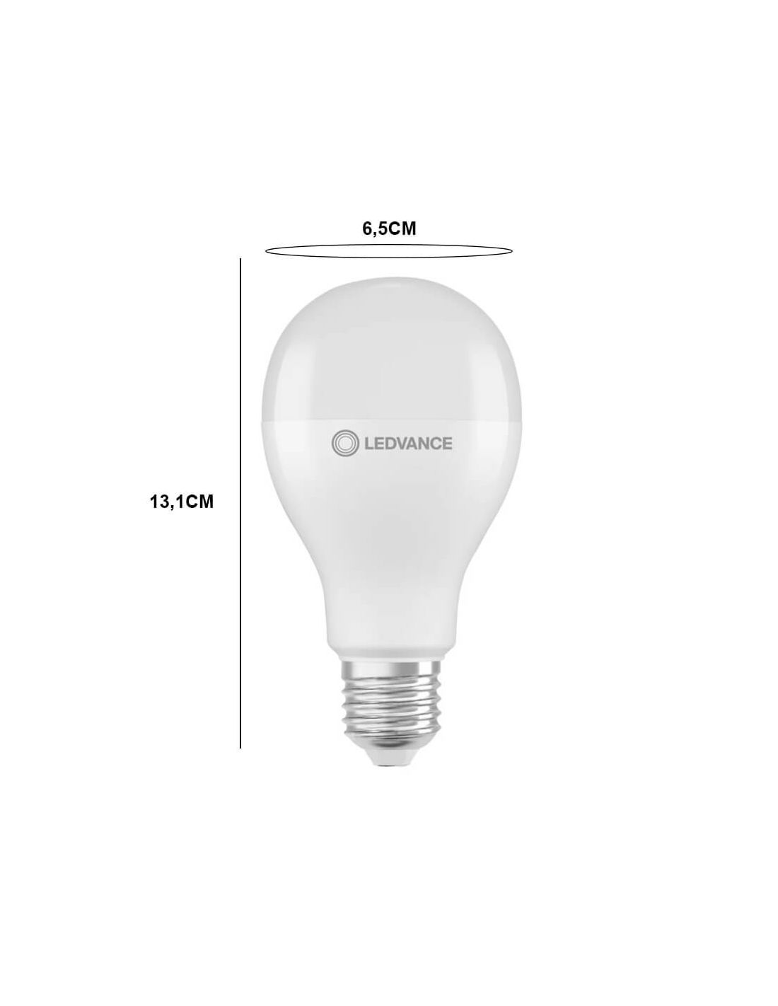 Ampoule LED 19W avec filetage E27 , format A65 de la marque LedVance d'une puissance de 19W équivalente à 150W d'une ampoule à incandescence qui offre une intensité lumineuse de 2 452Lm . Sa tonalité claire est de 2700k , une tonalité chaude très similaire à ce que proposaient les anciennes ampoules à filament. Ce ton de Lumière est recommandé pour les habitations, les hôtels, les entrepôts et les zones de repos.