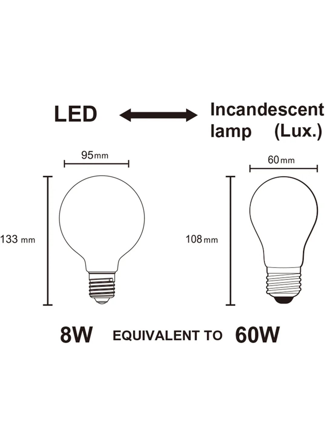 L' ampoule LED G95 à culot E27 est la solution idéale pour ceux qui recherchent un éclairage décoratif avec variateur. Son design sphérique et imposant apporte une touche d'élégance aux luminaires apparents et aux lampes modernes.