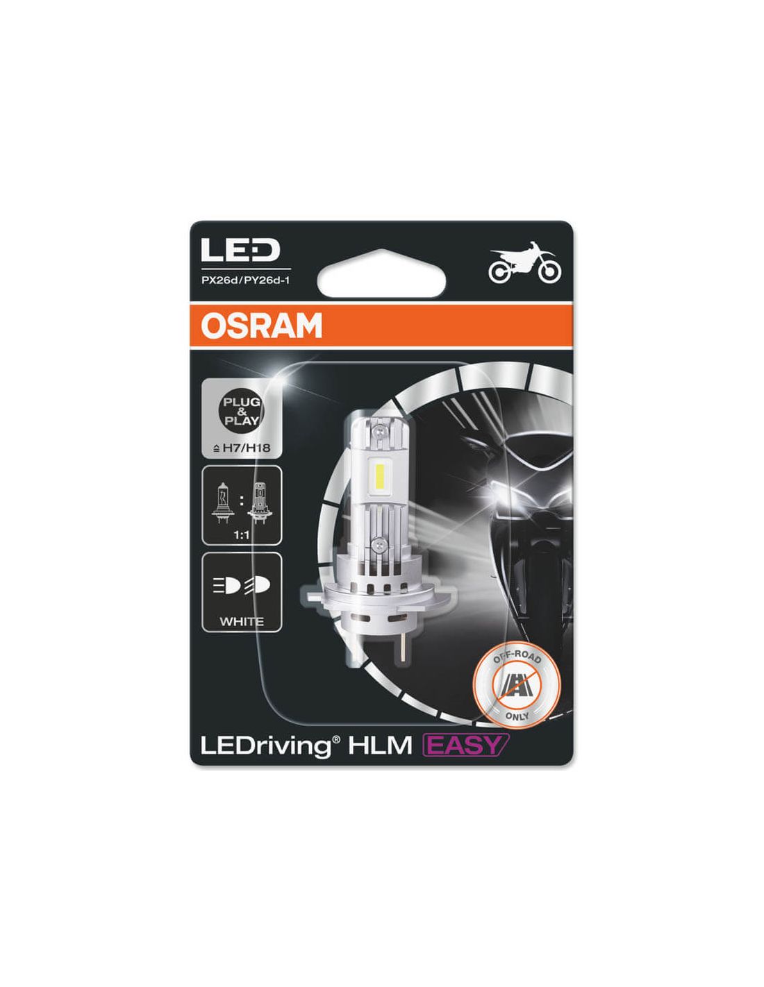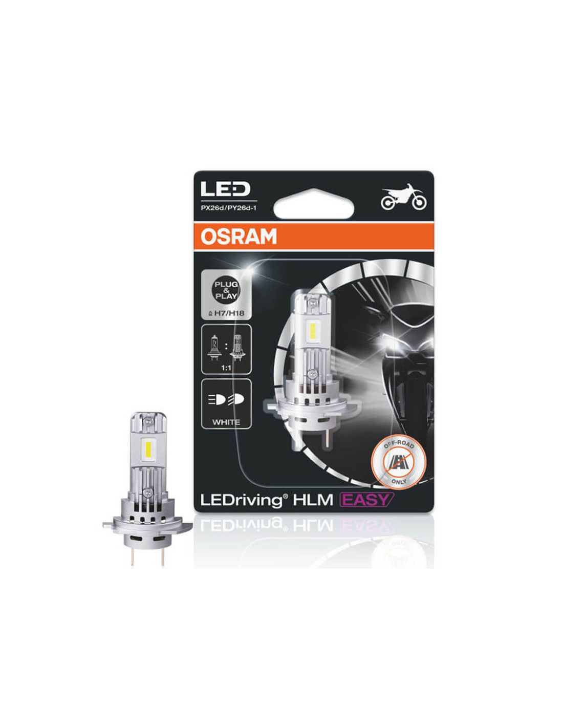 Ampoule LED Osram HL EASY H7/H18 de référence 64210DWESY, une tonalité de Lumière Blanche Froide 6500K d'une intensité de 1400Lm et d'une puissance de 16W, elle est plus lumineuse que les Ampoules Halogènes classiques, Ampoule valable pour court ou long, valable pour H7 et H18 sans changer la douille. Nouvelle gamme Osram, plus besoin d'adaptateurs ou de bouchons en caoutchouc.