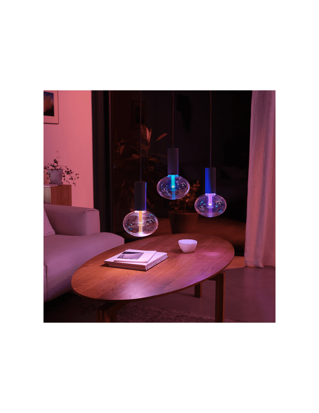 Une idée exceptionnelle pour habiller vos dîners est de regrouper plusieurs ampoules Lightguide sur la table à manger, vous surprendrez ainsi vos invités avec une lumière intelligente et colorée.