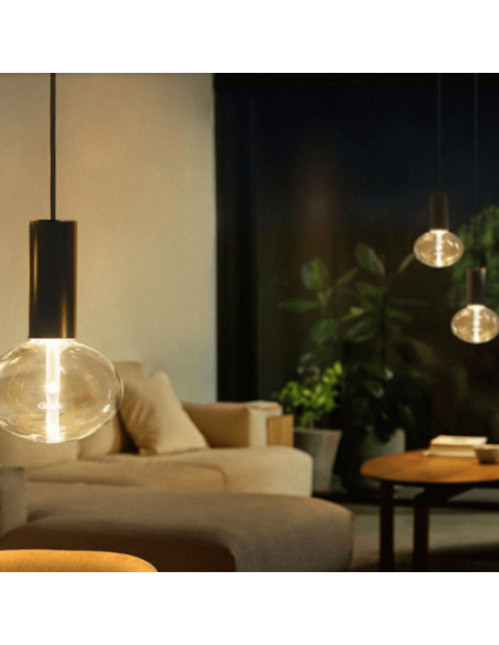 Ampoule LED Lightguide au design intelligent avec filetage large E27 d'une puissance de 6,5W, une intensité lumineuse de 500Lm et une tonalité lumineuse de 2 000K à 6500K + 16 millions de couleurs, cette Ampoule Philips HUE est compatible avec les assistants vocaux tels qu'Alexa, Google Home , Apple Home (via Hue Bridge) et Microsoft Cortana (via Hue Bridge).