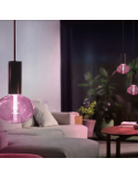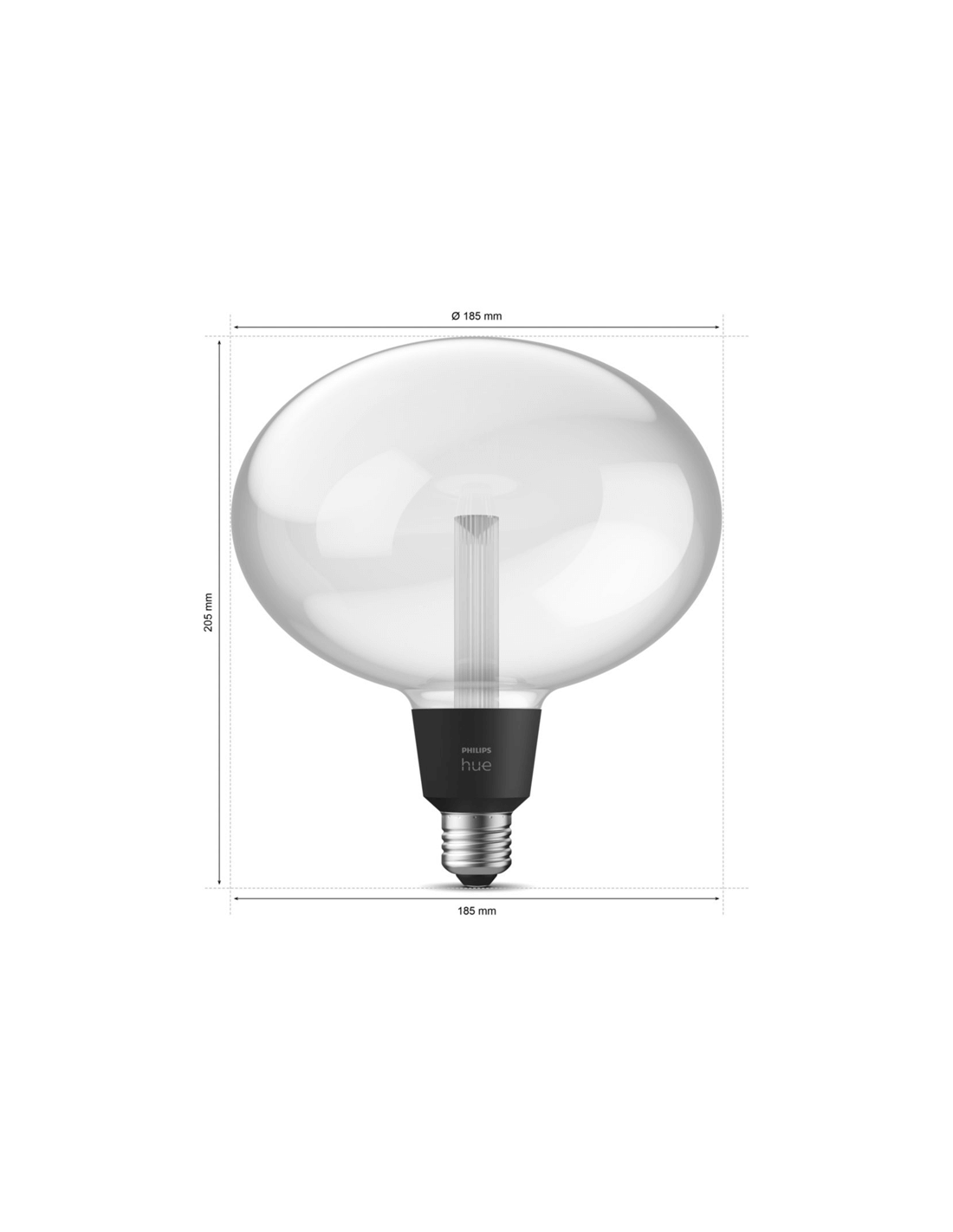 Il est également dimmable avec l' application et l'interrupteur Hue . Il a un diamètre de 190 mm, une hauteur de 245 mm et pèse 200 g.