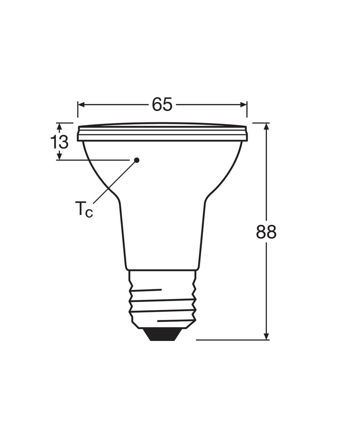 L'ampoule LED PAR20 avec douille E27 (Fat Thread) remplace les ampoules classiques de type PAR20 de 50 W, économisant ainsi jusqu'à 90 % de la consommation lumineuse, offre une puissance de 6,4 W, une intensité lumineuse réglable de 350 Lm et une tonalité de lumière chaude de 2 700 K avec un faisceau de 36º. angle. Gamme LedVance Performance avec une très longue durée de vie de 25 000 heures et 5 ans de garantie.