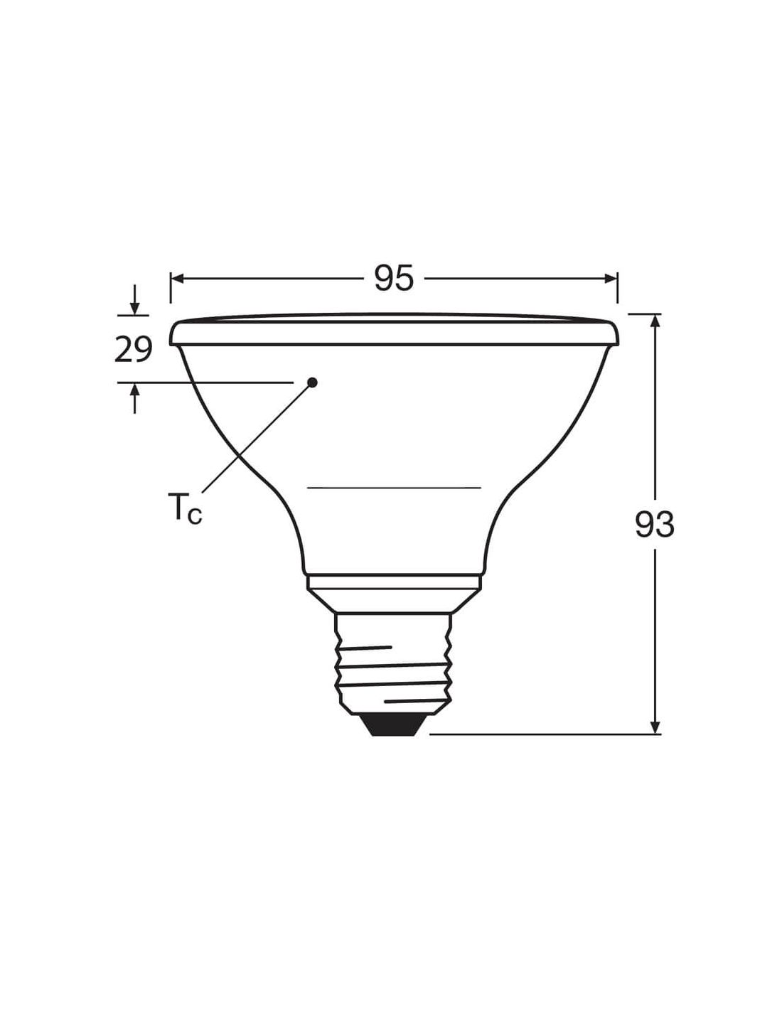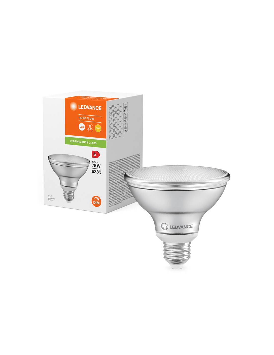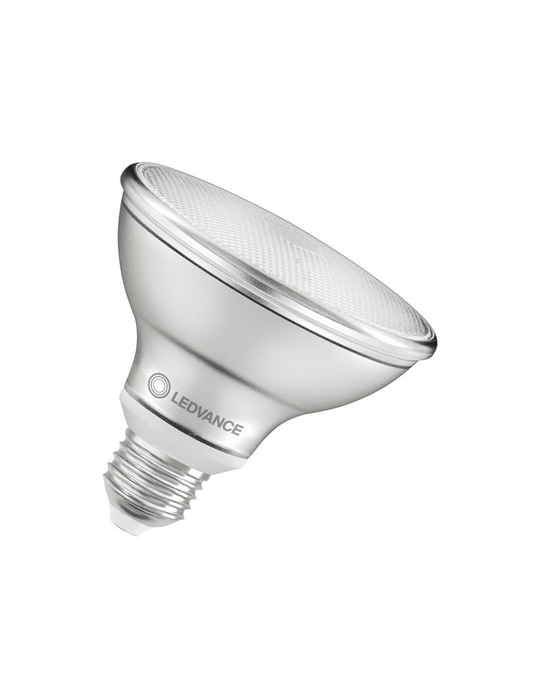 L'ampoule LED PAR30 avec douille E27 (Fat Thread) remplace les ampoules classiques de type PAR30 de 75W, économisant ainsi jusqu'à 90% de consommation lumineuse, offre une puissance de 10W, une intensité lumineuse réglable de 633Lm et une nuance de lumière chaude de 2700K avec un angle de faisceau de 36º. Gamme LedVance Performance avec une très longue durée de vie de 25 000 heures et 5 ans de garantie.