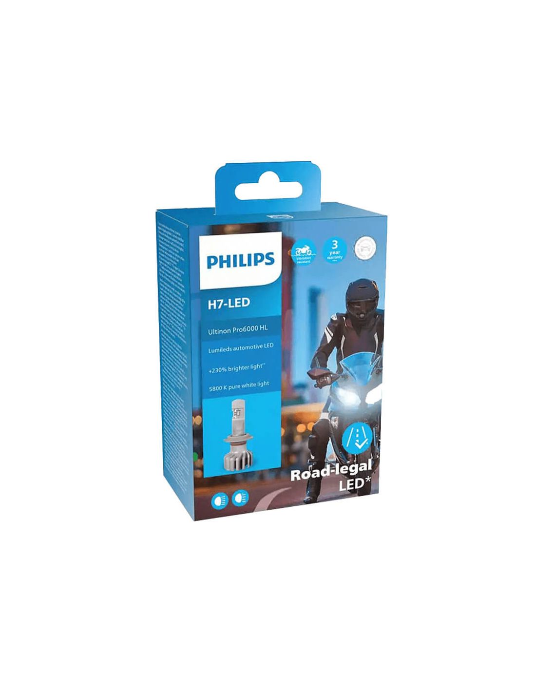 Découvrez l' ampoule LED H7 homologuée en France avec la dernière technologie LED chez Philips. Il s'agit de la nouvelle gamme d'ampoules LED H7 Philips Ultinon Pro6000 pour motos . Cette ampoule offre 230% de lumière en plus (par rapport à l'ECE R112 minimum), une gamme d'ampoules homologuées ECE, (Legal Street).