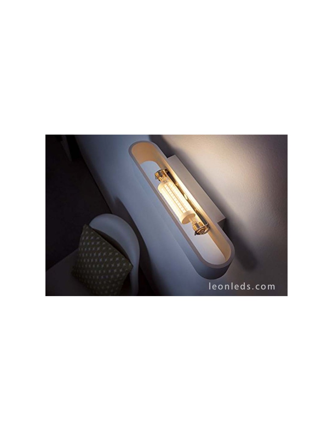 L' Ampoule LED Linéaire est parfaite pour remplacer une Ampoule Halogène dans un Lampadaire de salon à intensité réglable, un Plafonnier à intensité réglable, une Applique murale ou toute Lampe utilisant une Ampoule R7s de 118 mm à intensité variable (Dimmable).