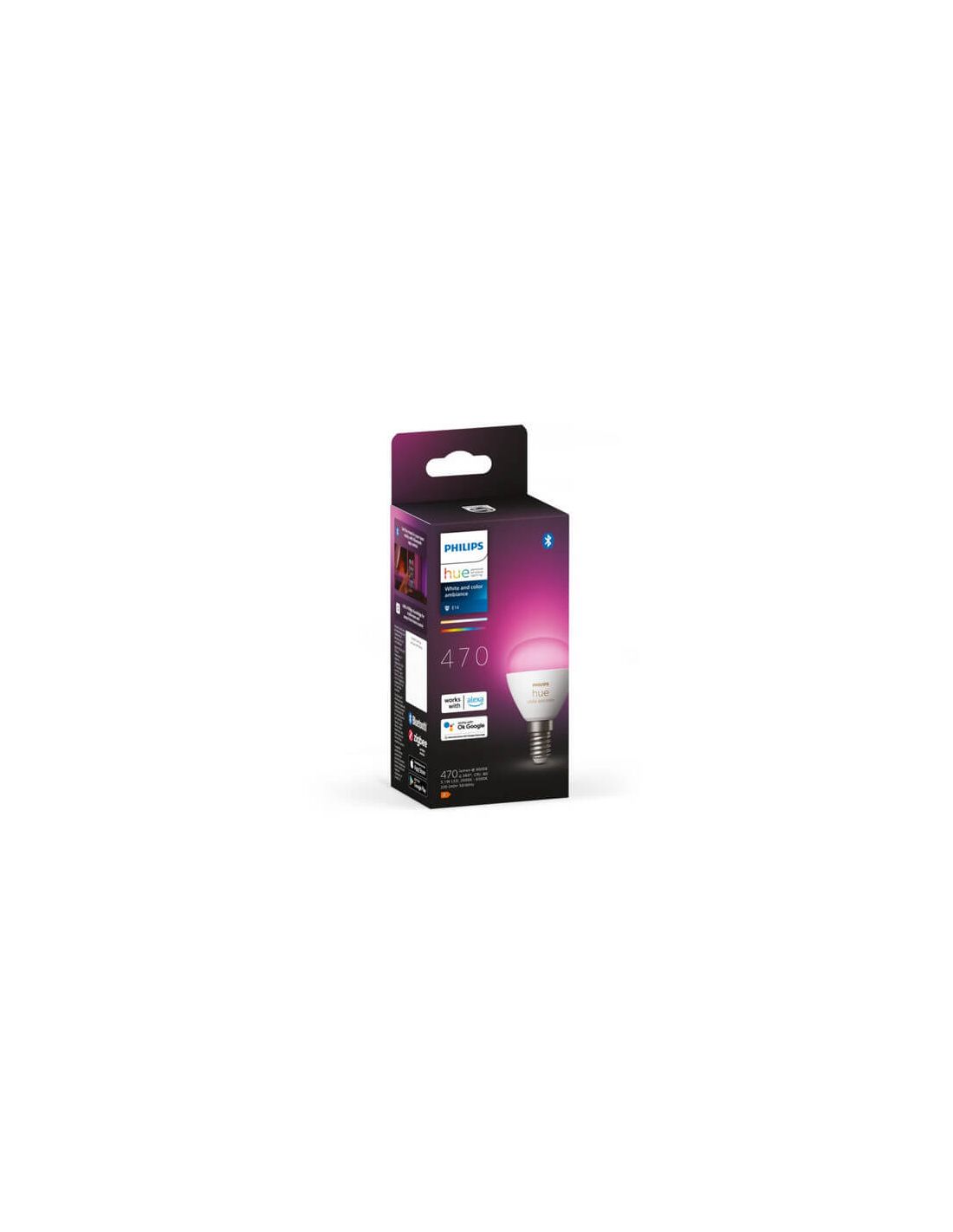 L' ampoule sphérique intelligente Philips Hue White and color Ambiance 5,1 W Lustre E14 vous permet d'intégrer vos petites lampes et luminaires dans le système d'éclairage intelligent Philips Hue.