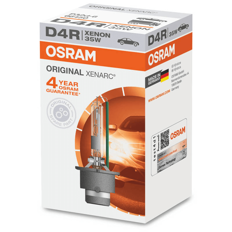 Si vous cherchez une ampoule Xénon D4R avec douille P32d-6 avec un rapport qualité-prix imbattable, cette ampoule de la gamme Osram Original Xenarc 66450 est le choix parfait. La couleur de lumière offerte par cette ampoule va jusqu'à 4 300K, elle offre une puissance lumineuse de 2 800Lm ± 16% avec une durée de vie allant jusqu'à 3 000 heures. C'est l'ampoule parfaite si vous recherchez une ampoule de remplacement d'origine, recommandée lorsque l'on veut changer l'une des deux ampoules de la voiture puisque cette gamme est installée dans les véhicules neufs.