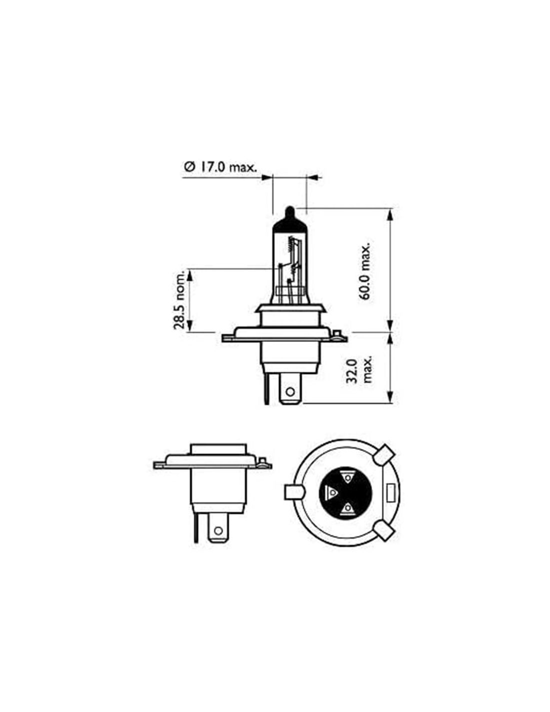 L' ampoule halogène Philips X-tremeVision +130% H4 offre un éclairage nettement plus puissant qu'une ampoule standard, fournissant jusqu'à 130 % de lumière en plus sur la route. D'une puissance de 60/55 W , d'une tension de 12 V et dotée d'un culot P43T , cette ampoule est conçue pour améliorer la visibilité nocturne et accroître la sécurité routière, tout en étant homologuée ECE pour une utilisation sur route.