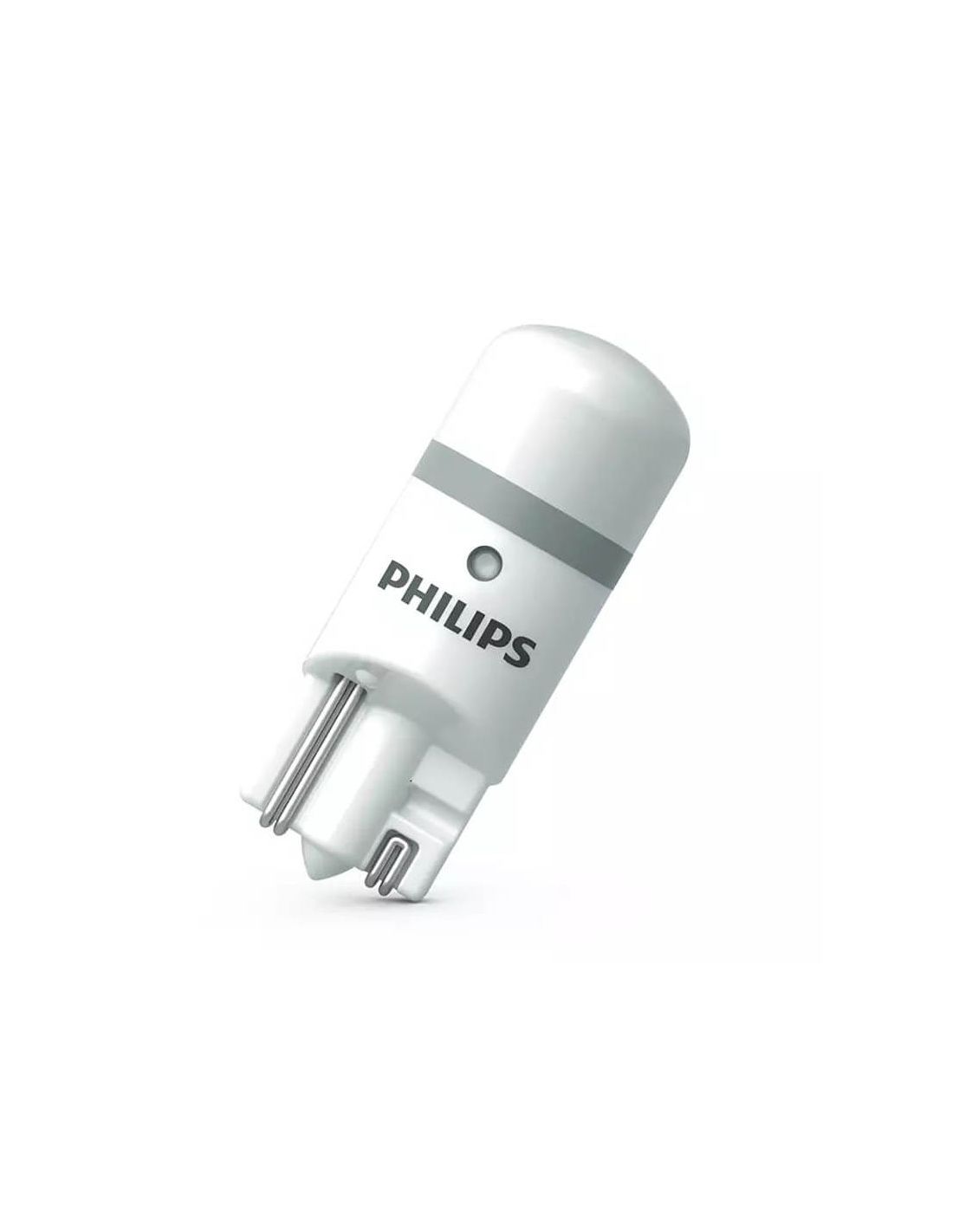 Ampoule LED T10 homologuée Philips Ultinon PRO6000 W5W (W2,1x9,5d) , valable pour les véhicules 12V, avec une puissance de 1w et une intensité lumineuse de 50Lm et un ton lumineux blanc froid 6000K.
