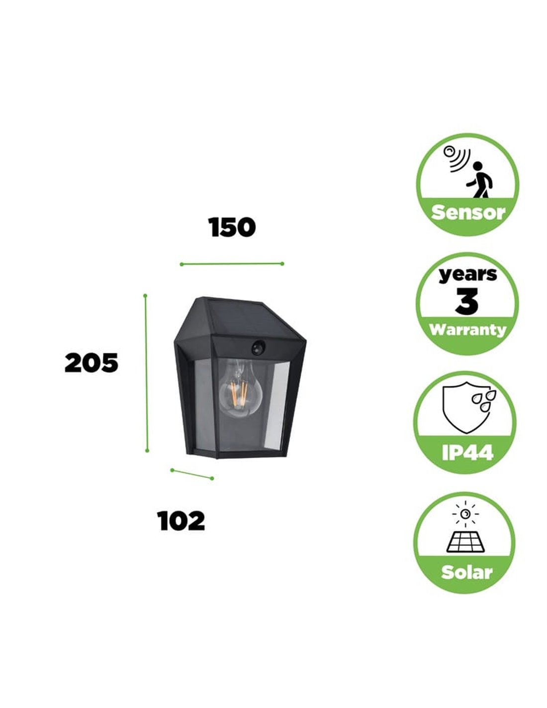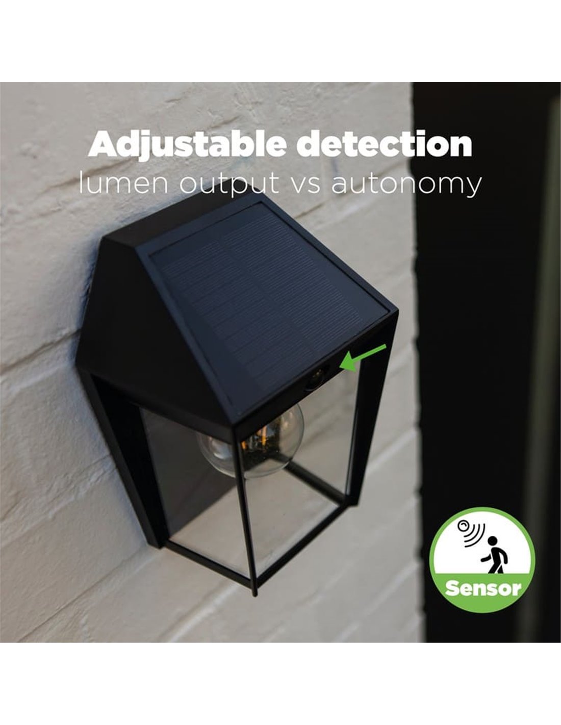 L' applique d'extérieur AVONY de Lutec allie design classique et technologie moderne pour offrir un éclairage efficace et durable dans les espaces extérieurs. Fabriquée en noir mat, cette applique murale dispose d'un panneau solaire intégré qui alimente une ampoule avec une douille E27 (non incluse), permettant une flexibilité dans le choix de la source lumineuse. De plus, il intègre un capteur de mouvement PIR avec un angle de détection de 120° et une distance allant jusqu'à 8 mètres, offrant sécurité et efficacité énergétique en activant la lumière uniquement lorsqu'un mouvement est détecté. Avec un indice de protection IP44 , il résiste aux intempéries, garantissant une durabilité en extérieur.