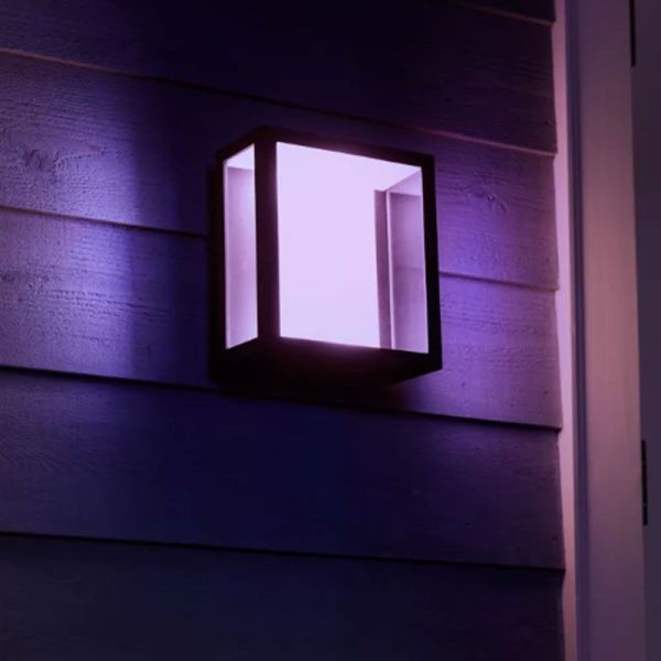 Avec une lumière blanc chaud, blanc froid ou plus de 16 millions de couleurs, l' applique murale extérieure carrée Impress WACA met le contrôle entre vos mains. Philips Hue fonctionne avec Amazon Alexa, Apple Homekit et Google Assistant afin que vous puissiez contrôler votre éclairage vocalement. Cela nécessite un pont Hue, vendu séparément. L'applique Impress a des dimensions de 24 cm de hauteur, 19 cm de longueur, 11,7 cm de largeur et pèse 1,825 kg.