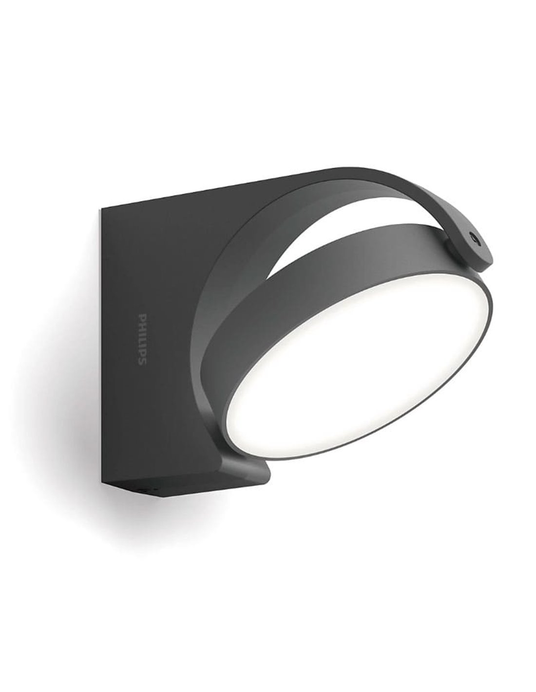 Applique murale d'extérieur MIMOSA avec design rotatif, anthracite, étanche, 7W avec 2 options de couleurs de lumière : 2700K/4000K - Philips