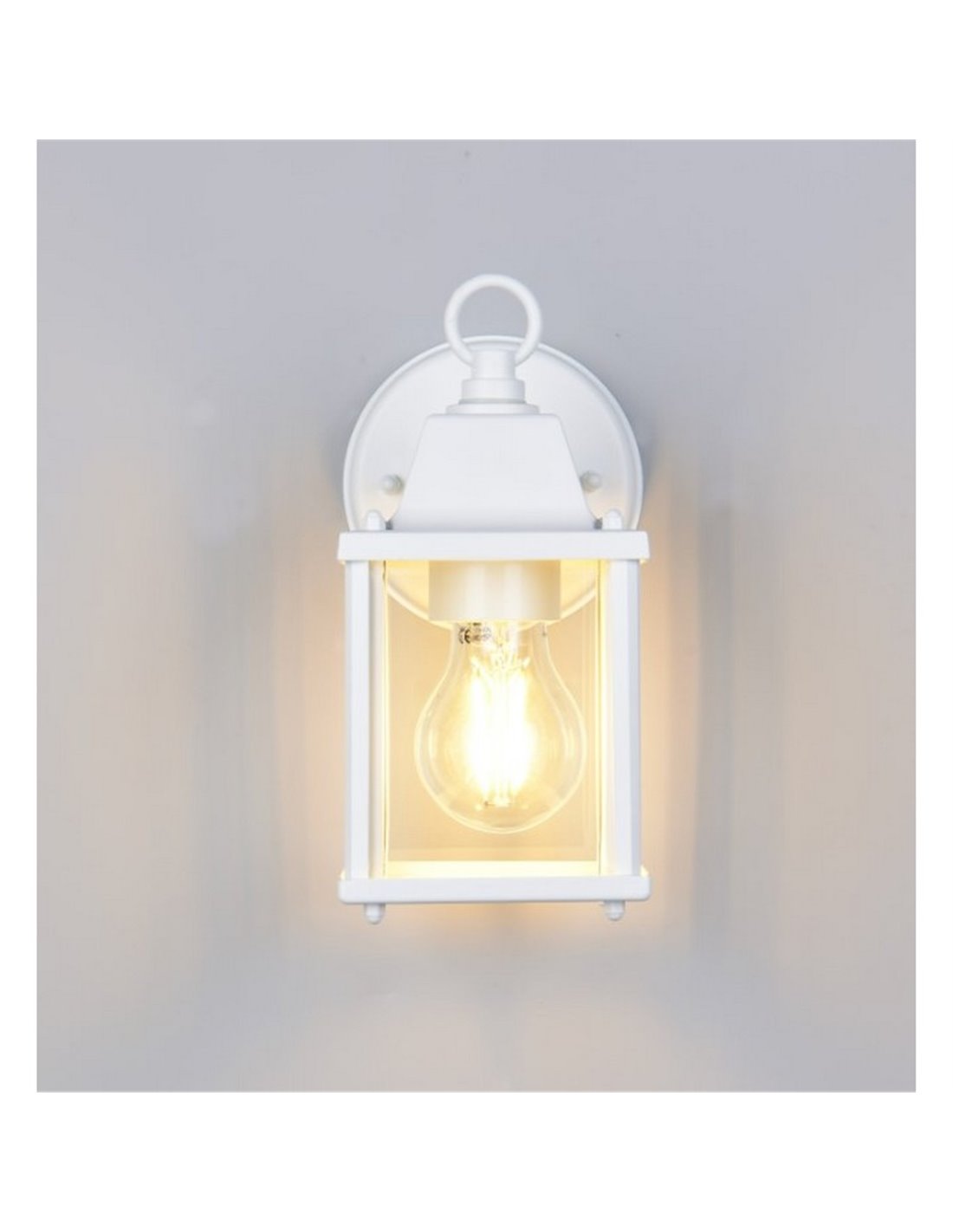 L' applique murale style lanterne MIRANDE blanche est parfaite pour apporter une touche élégante et accueillante à votre espace extérieur. Son design en forme de lanterne, ainsi que sa finition blanche, en font une option polyvalente pour les jardins, les entrées ou les terrasses. Il est compatible avec les ampoules E27 jusqu'à 40W (ampoule non incluse), permettant un éclairage adapté à vos besoins.