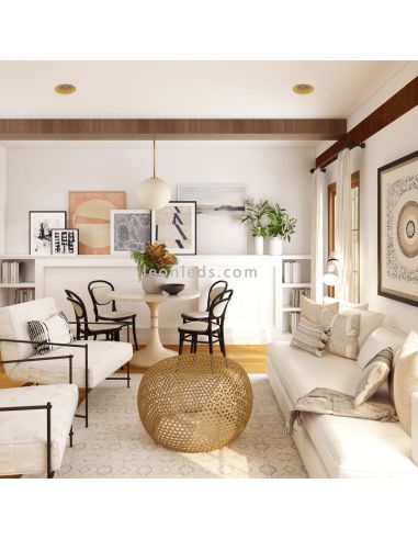 La lampe ronde LED Winka finition dorée vous surprendra par sa beauté, ainsi que pour fournir un large spectre de lumière de qualité. Il s'adapte sans problème au style de décoration qui prévaut dans les pièces, que ce soit dans votre maison ou dans votre restaurant, hôtel, bureau, etc. Sa finition dorée est audacieuse et donne beaucoup de jeu, ainsi qu'une touche avant-gardiste à l'espace intérieur, offrant un cachet unique et distinctif.