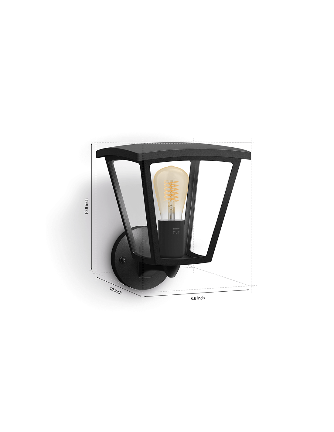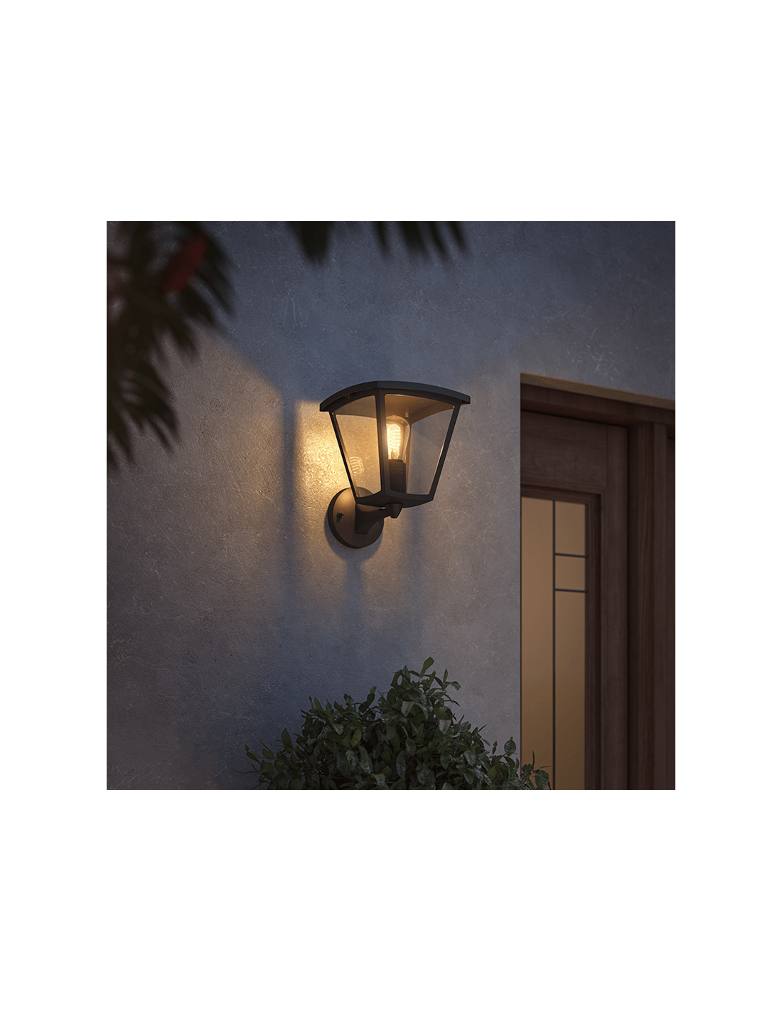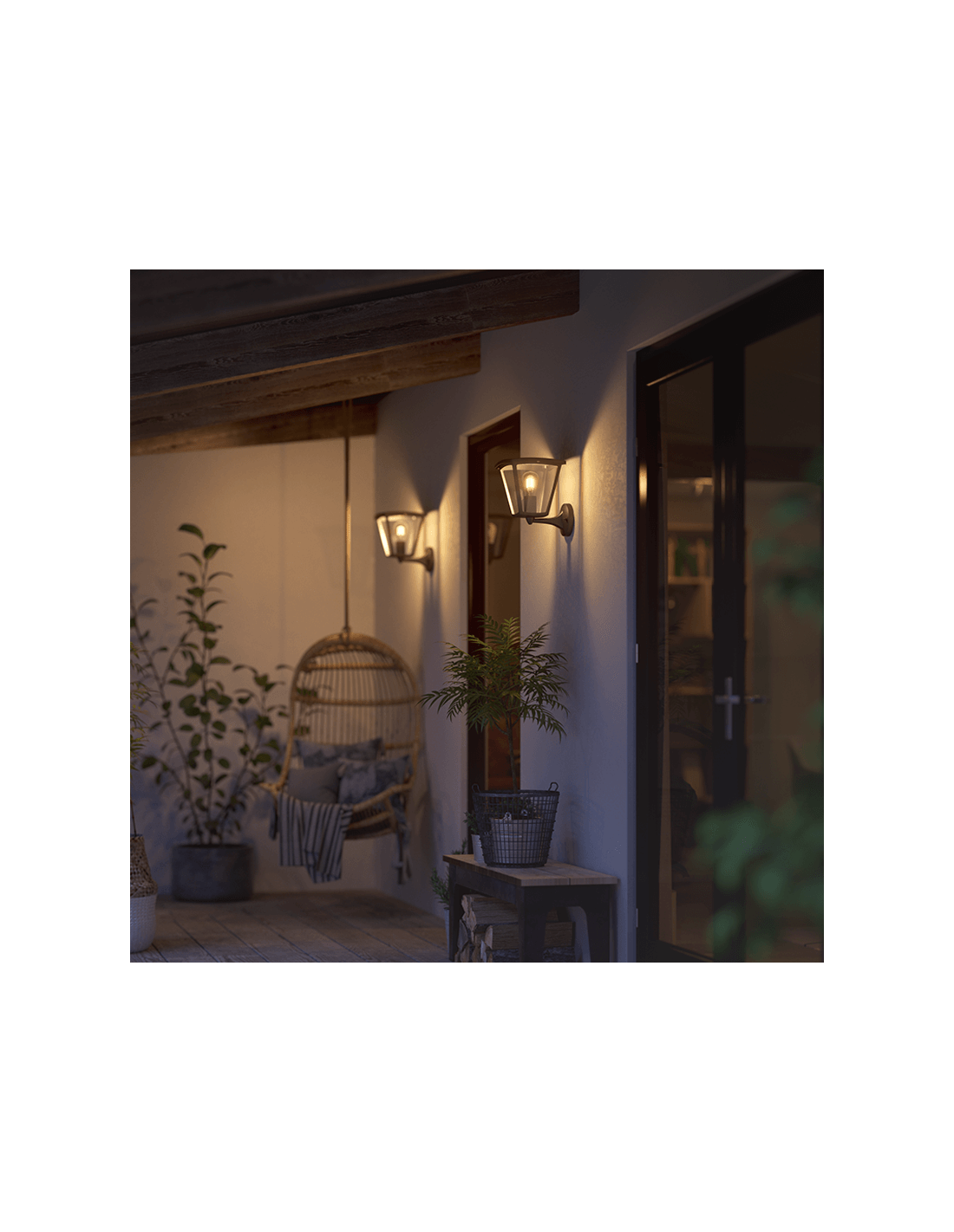 L' applique Inara noire Inara propose un design traditionnel où elle intègre tous les avantages d'un éclairage intelligent. Offre une ampoule à filament d'air vintage pour ajouter de l'accent à n'importe quel environnement extérieur (IP44). Ajoutez de la lumière instantanée à votre espace extérieur avec un éclairage blanc chaud à luminosité variable pour créer le cadre parfait pour chaque instant . Comprend une ampoule LED E27