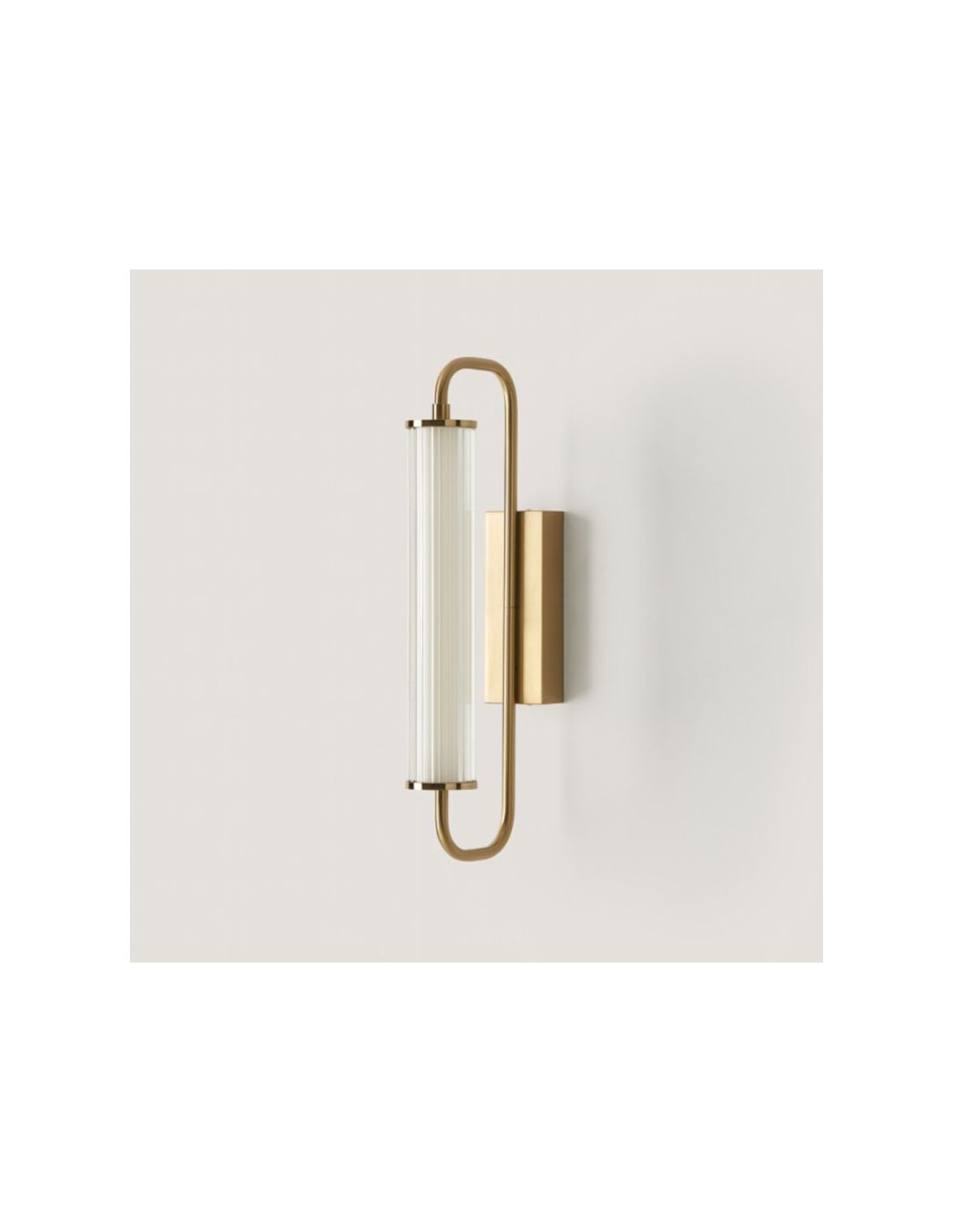 L'applique Ison est composée d'acier et de verre. La structure métallique est disponible en or mat et noir mat, deux coloris très sophistiqués. Le diffuseur de lumière est en verre cannelé, un matériau qui ajoutera une touche de subtilité à cette applique.