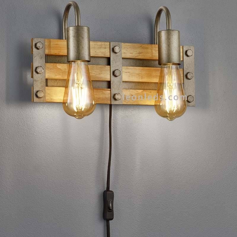 Cette applique murale 2 lumières pour intérieur vous permet d'installer 2 ampoules LED avec filetage E27, nous vous conseillons d'installer 2 ampoules de style vintage au ton chaud 3000K et d'une puissance comprise entre 4 et 10W. N'inclut pas les ampoules, nous devons le sélectionner dans la section correspondante de notre site Web, Ampoules LED Vintage.