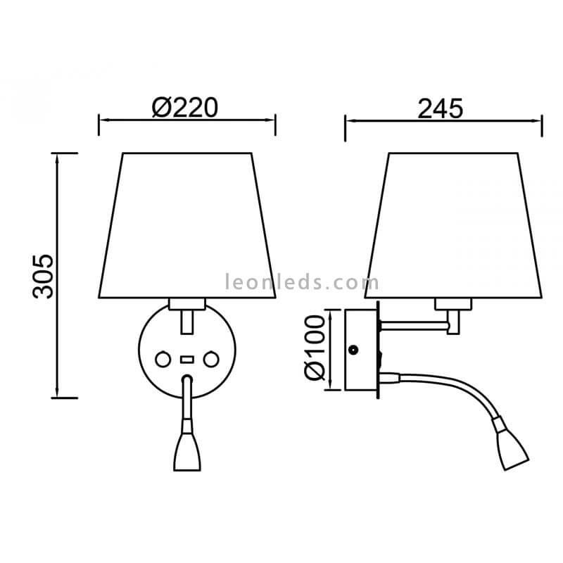 Applique murale classique avec un bras de lecture LED flexible d'une puissance de 3W, une intensité lumineuse de 210Lm avec une tonalité de lumière chaude de 3000K, à l'intérieur de l'abat-jour rond en textile blanc, nous devons installer 1 ampoule LED avec filetage E27, non incluse. Cette applique LED est disponible en blanc, corne et nickel satiné, comprend un interrupteur pour le bras de lecture et pour l'éclairage de l'écran et un port USB. Il s'installe en intérieur en format surface,