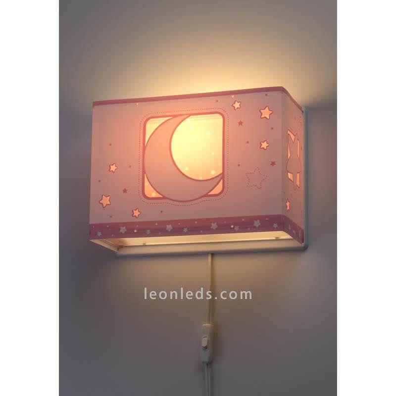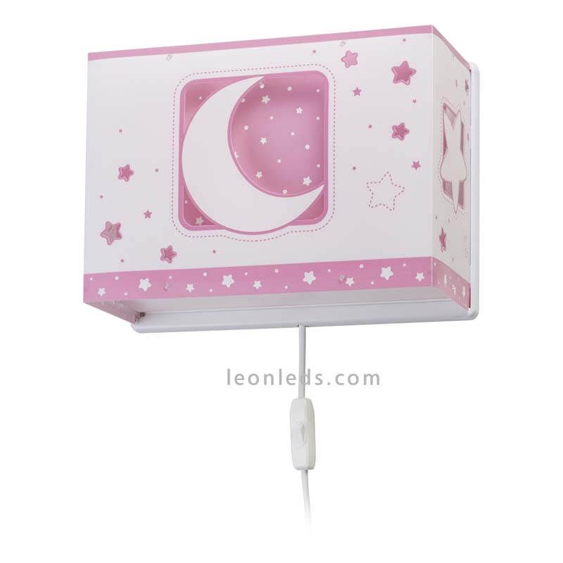 Applique murale rose de la série Moon Light de design pour enfants , d'une hauteur totale de 22,5 cm et d'une largeur de 31 cm. Cette applique murale pour enfants Moon Light a un câble et un interrupteur sur le câble lui-même, qui ne nécessite pas d'installation.