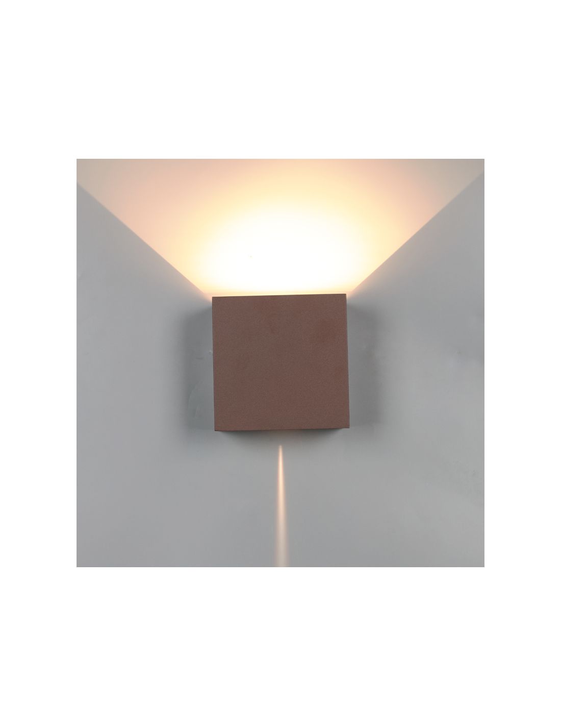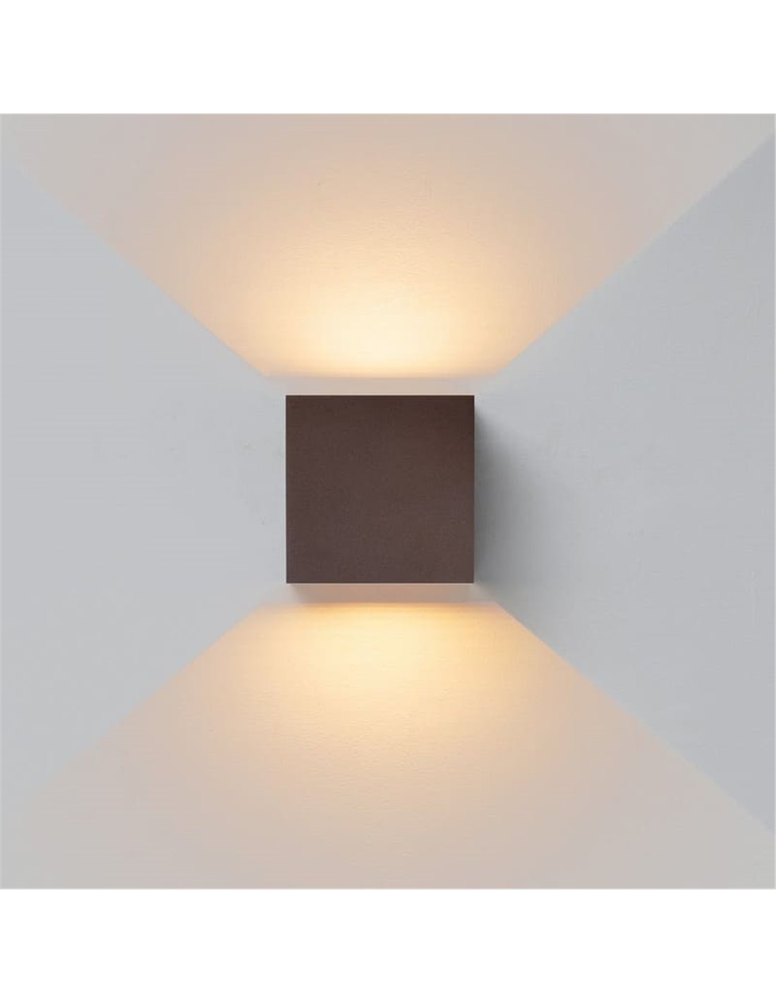 - Type de produit : Applique murale extérieure carrée à double émission LED.