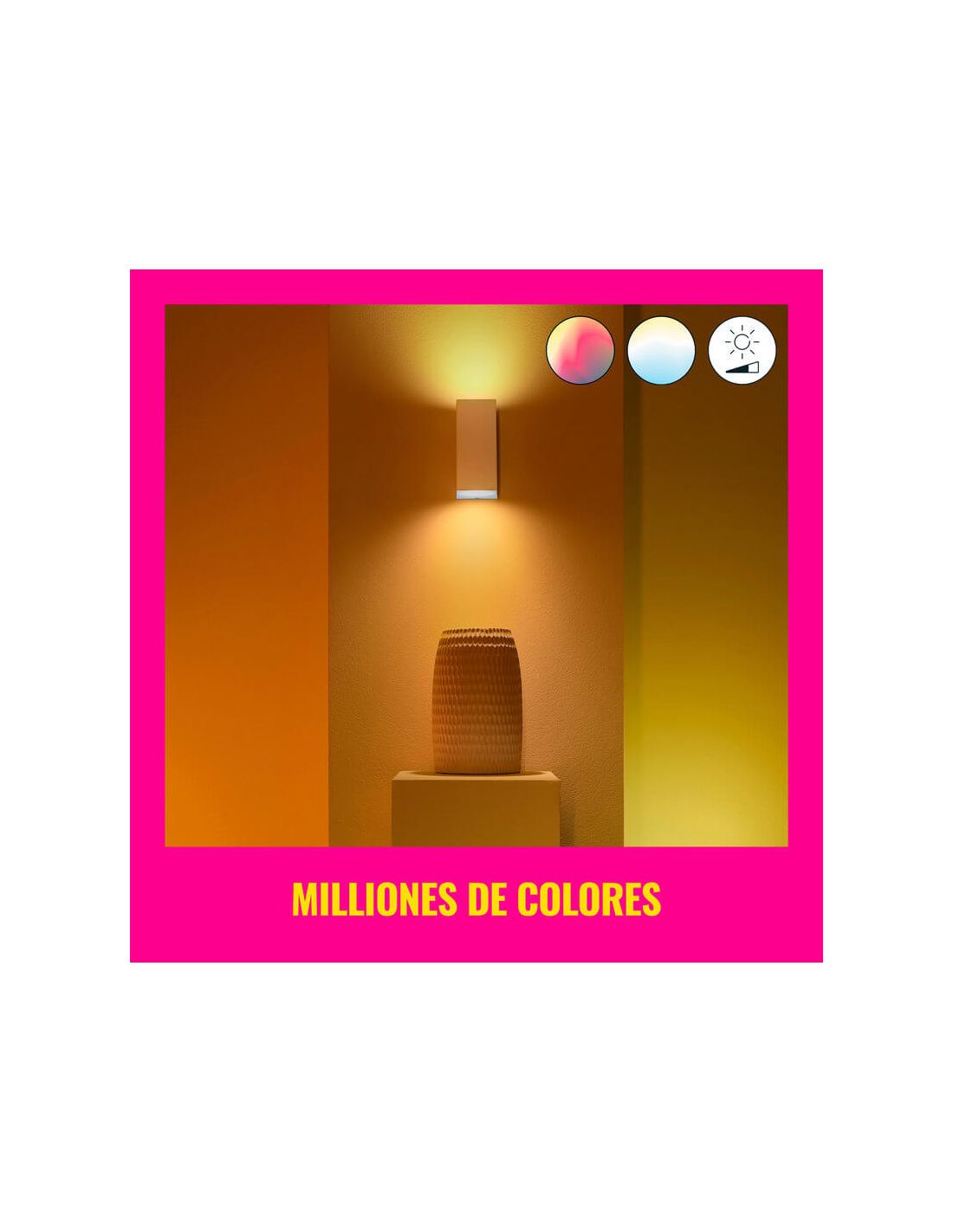 WiZ présente un spot mural en finition blanche ou noire qui vous fera vous amuser avec les motifs lumineux sur les murs et créer de véritables environnements harmonieux. Elle fonctionne comme une applique murale Up and Down pour les intérieurs , générant des formes de lumière intéressantes, donnant du caractère à la pièce où elle se trouve. Il a les dimensions suivantes : 15 cm de hauteur, 9,2 cm de longueur et 6,8 cm de largeur.