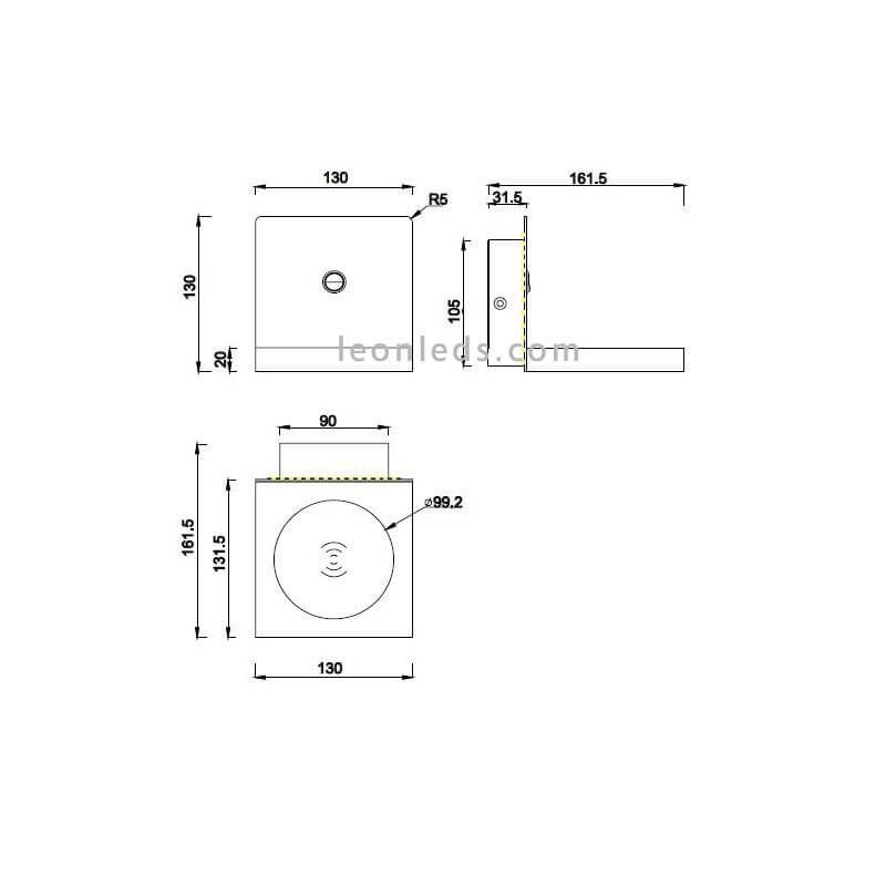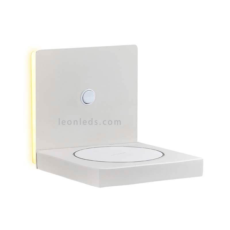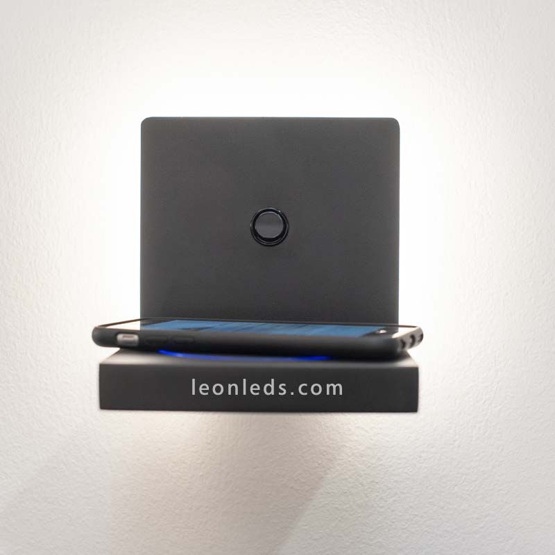 Nouvelle applique murale LED carrée avec technologie LED intégrée d'une puissance de 3W, une intensité lumineuse de 210Lm avec une tonalité de lumière chaude de 3000K et la lumière est émise tout autour de l'applique murale, éclairant le mur du bas, du haut et des côtés . Cette applique murale LED comprend un interrupteur et une charge par induction pour les téléphones portables, disponible en blanc et noir et avec un design moderne, c'est la nouvelle applique murale LED Zanzibar avec charge par induction .