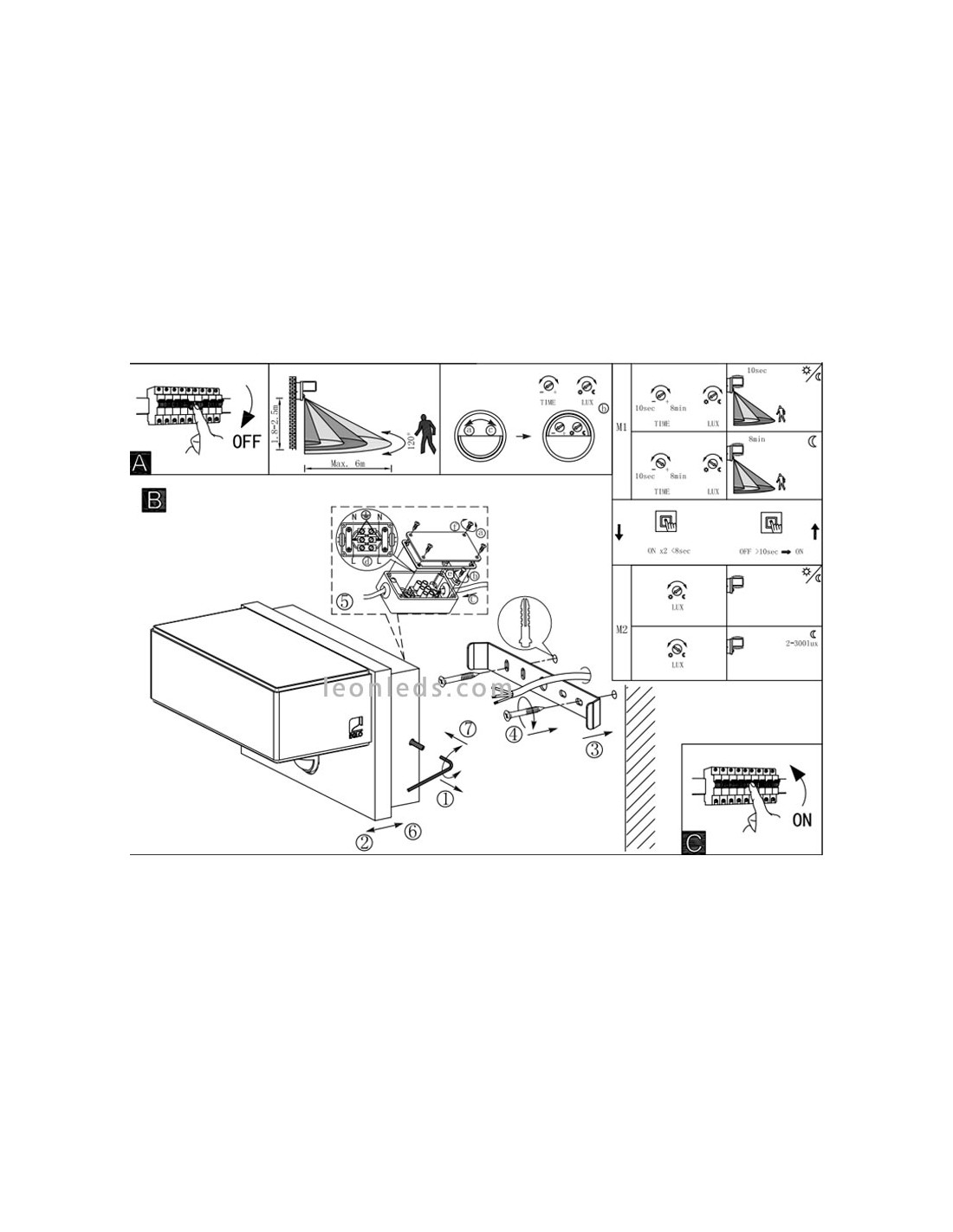 Le capteur de présence permet un angle de 110º, permet la régulation de la lumière ambiante, de sorte qu'il ne s'active que lorsqu'il fait nuit ou lorsqu'il y a de la lumière dans l'environnement, il peut être réglé de 10 Lux à 2000Lux.