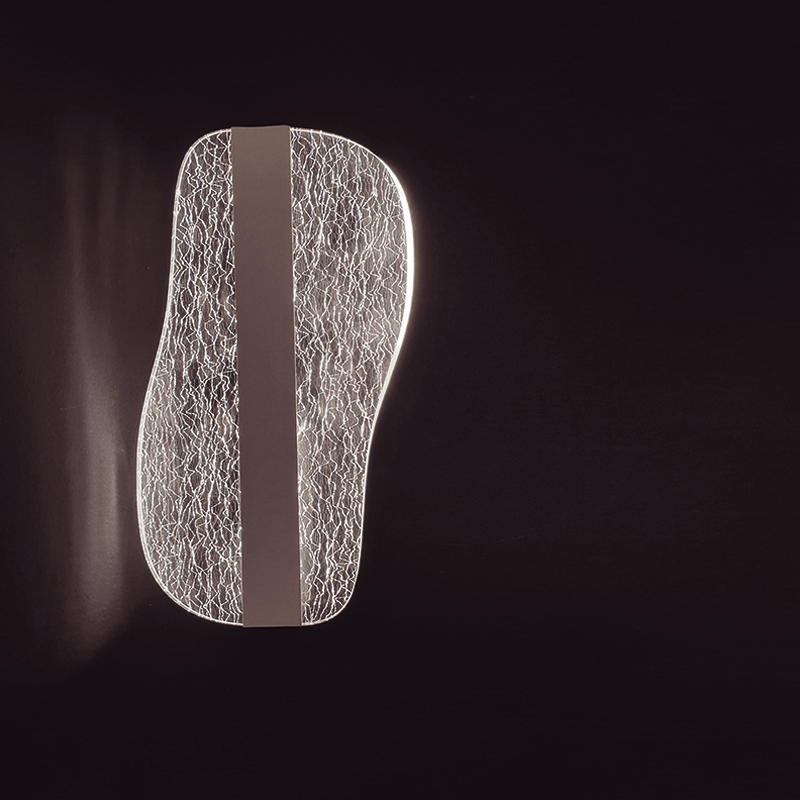Cette applique utilise une combinaison de deux matériaux dans son corps : le métal et l'acrylique, avec lesquels elle obtient son apparence unique et permet à son éclairage chaleureux en 3000k de se diffuser à travers les fissures, créant un effet très spécial.