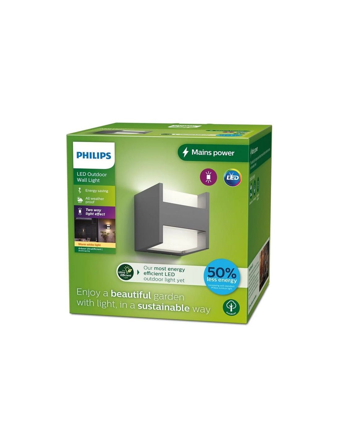 Découvrez la sophistication et l'efficacité de l'applique murale d'extérieur LED Philips Square Arbor. Conçue pour mettre en valeur la beauté de votre espace extérieur, cette applique murale suspend élégamment un cube de lumière au-dessus d'une base en fonte d'aluminium, offrant un éclairage bidirectionnel qui projette de puissants faisceaux de lumière blanche chaude de haut en bas du mur.