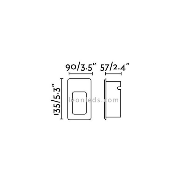 Cette balise extérieure encastrable a une mesure de coupe de 9 cm de long, 13,2 cm de haut et 8 cm de profondeur.