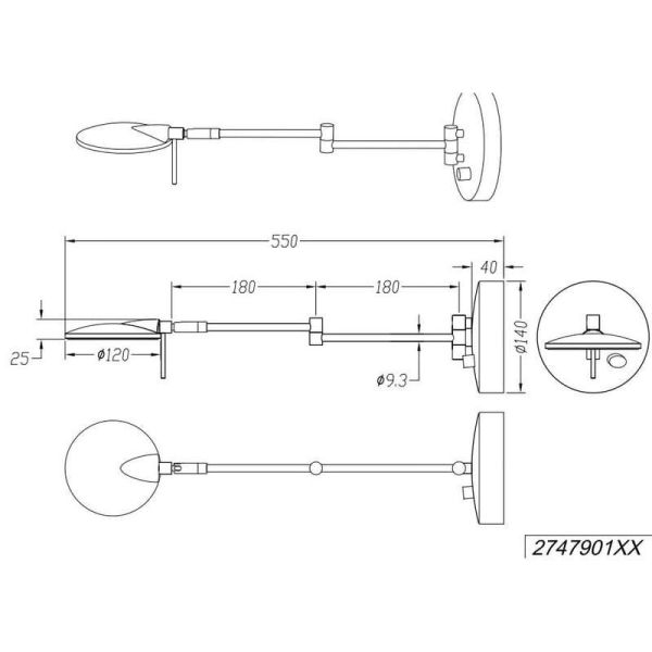 Applique LED CURTIS corps flexible et variateur intégré incl.1x4W LED 400Lm 3000K IP20