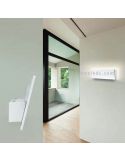 L' applique murale LED TOJA en finition blanche est une applique au design moderne et minimaliste, caractérisée par son format rectangulaire incliné qui génère un effet d'éclairage indirect très décoratif.