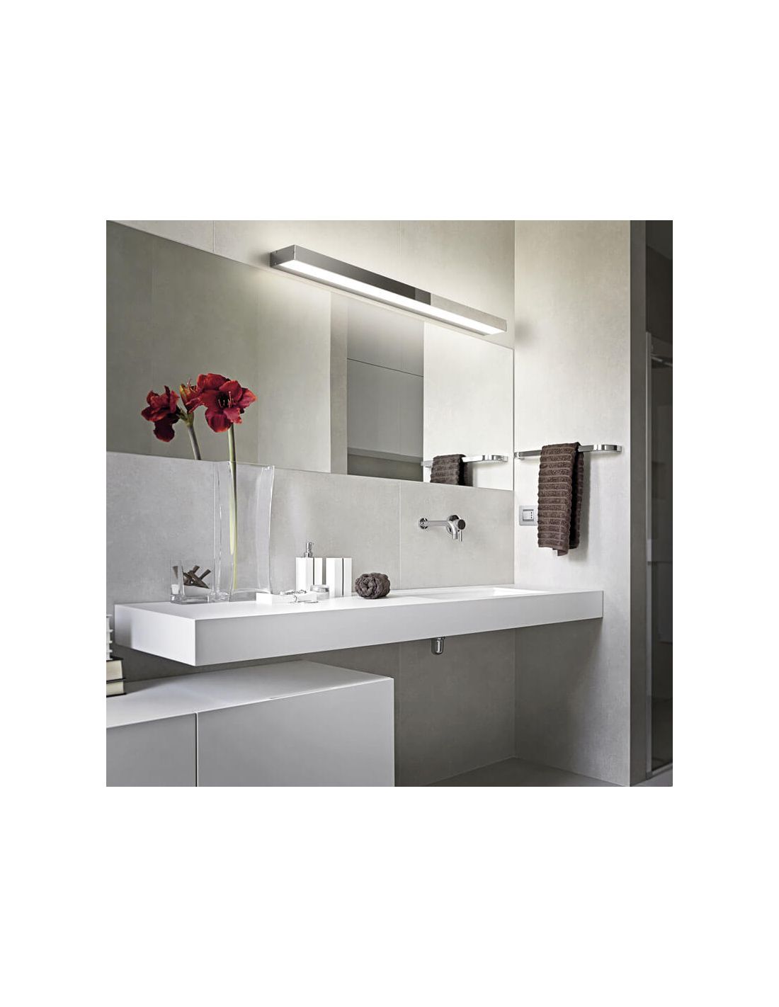 La série Rocco se caractérise par la combinaison d' aluminium chromé et d'acrylique avec un écran blanc . Egalement pour proposer un éclairage efficace avec la technologie LED, avec 8W ou 13W de puissance selon le modèle choisi, puisqu'il y en a deux disponibles.