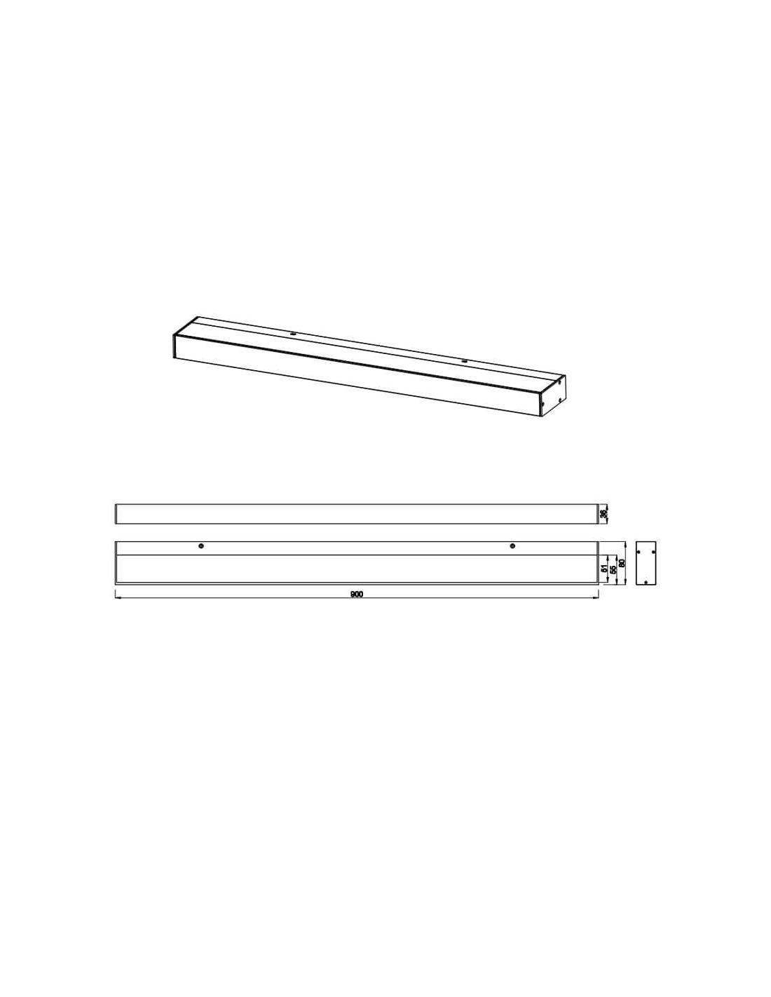 L' applique murale Rocco noire 13W et 1400 lumens offre une largeur de 90 cm et 3 cm de hauteur pour un poids de 1 065 kg.