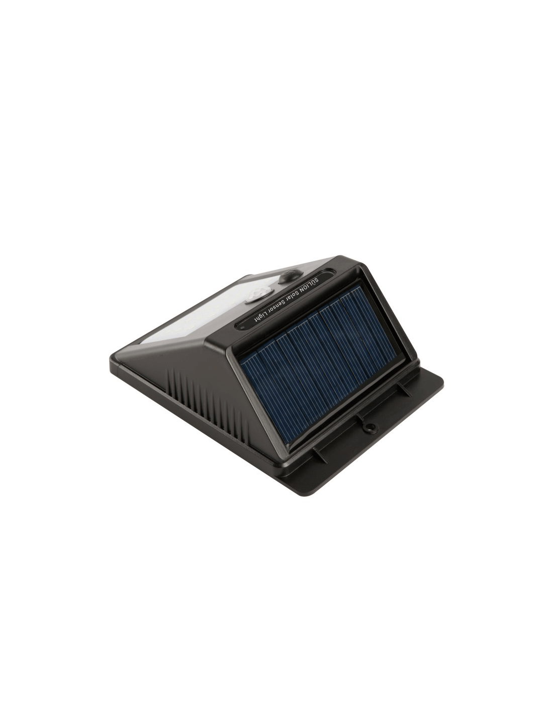 Applique murale d'extérieur à LED avec un capteur de présence en noir à l'avant, où se trouve le panneau solaire, et à l'arrière, elle émet de la lumière, avec une intensité lumineuse de 320Lm et une puissance de 2,8W. Le ton de lumière de cette applique murale solaire froide est de 6 000 K et un IRC de 75. L'angle de lumière est de 120º et offre un degré de protection IP44 résistant aux liquides et aux solides.