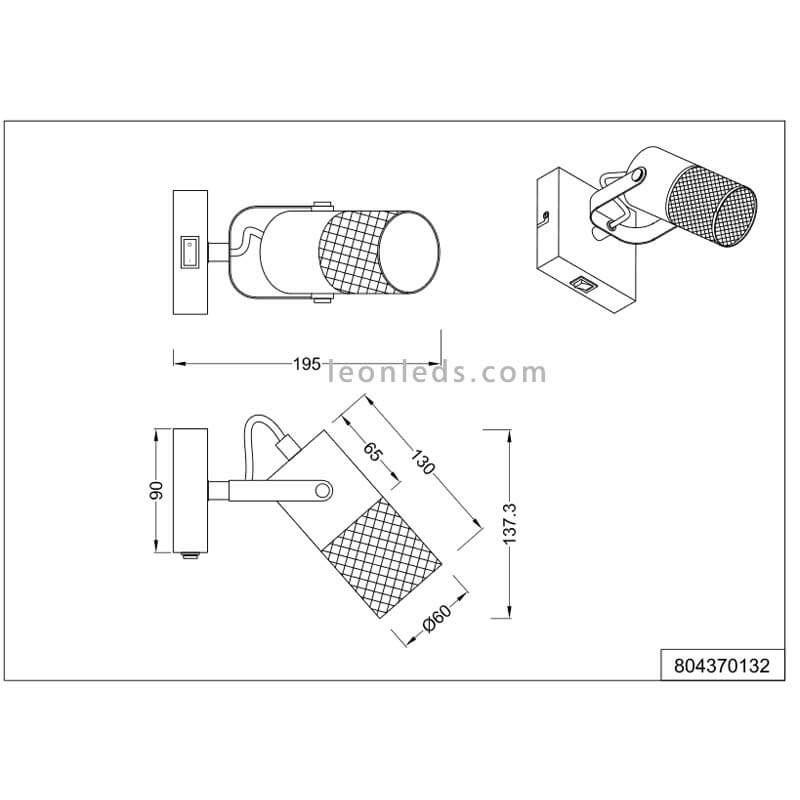 Applique murale en métal noir et bois de style vintage de la collection Tosh par Trio Lighting. Elle nous propose 1 spot en métal avec un socle en bois orientable des deux côtés. Sa plaque métallique s'installe au mur ou au mur et dispose d'un interrupteur pour allumer et éteindre l'applique murale. Ce spot orientable nécessite l'installation d'une ampoule E14 (non fournie) d'un maximum de 15W. Vous pouvez choisir le ton de lumière que vous préférez en fonction de la pièce et de sa taille. De LeónLeds, nous recommandons l'installation d'une ampoule de style vintage avec un filament visible pour rehausser son style rétro-industriel.